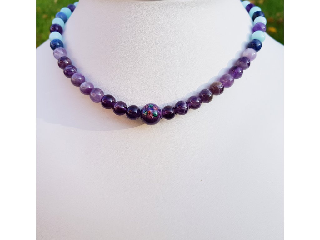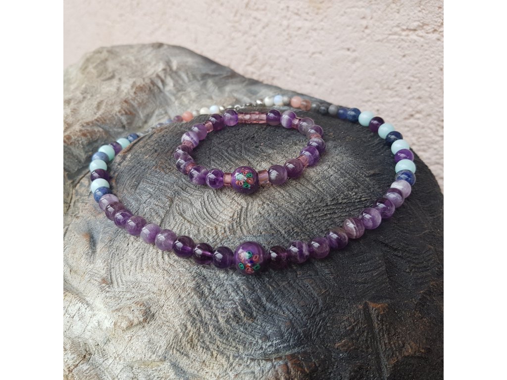 "V šeříku" Náhrdelník (ametyst, mix minerálů)