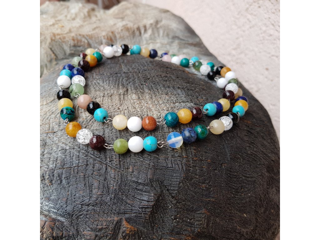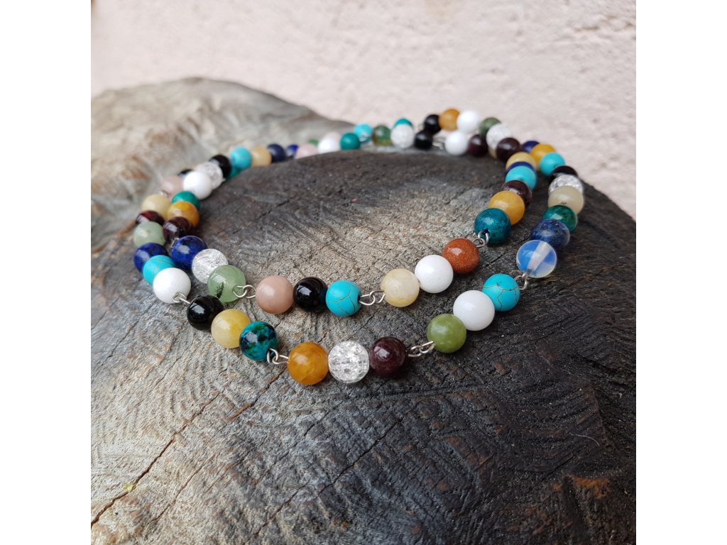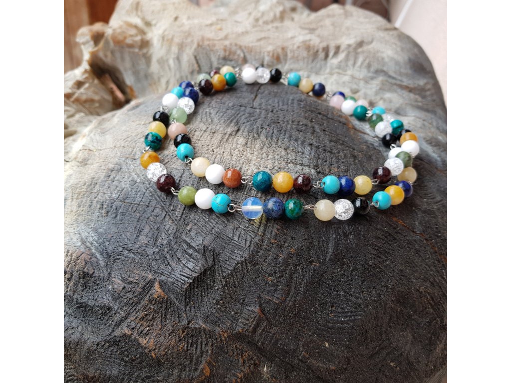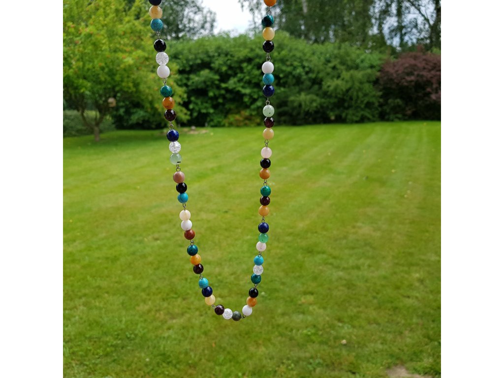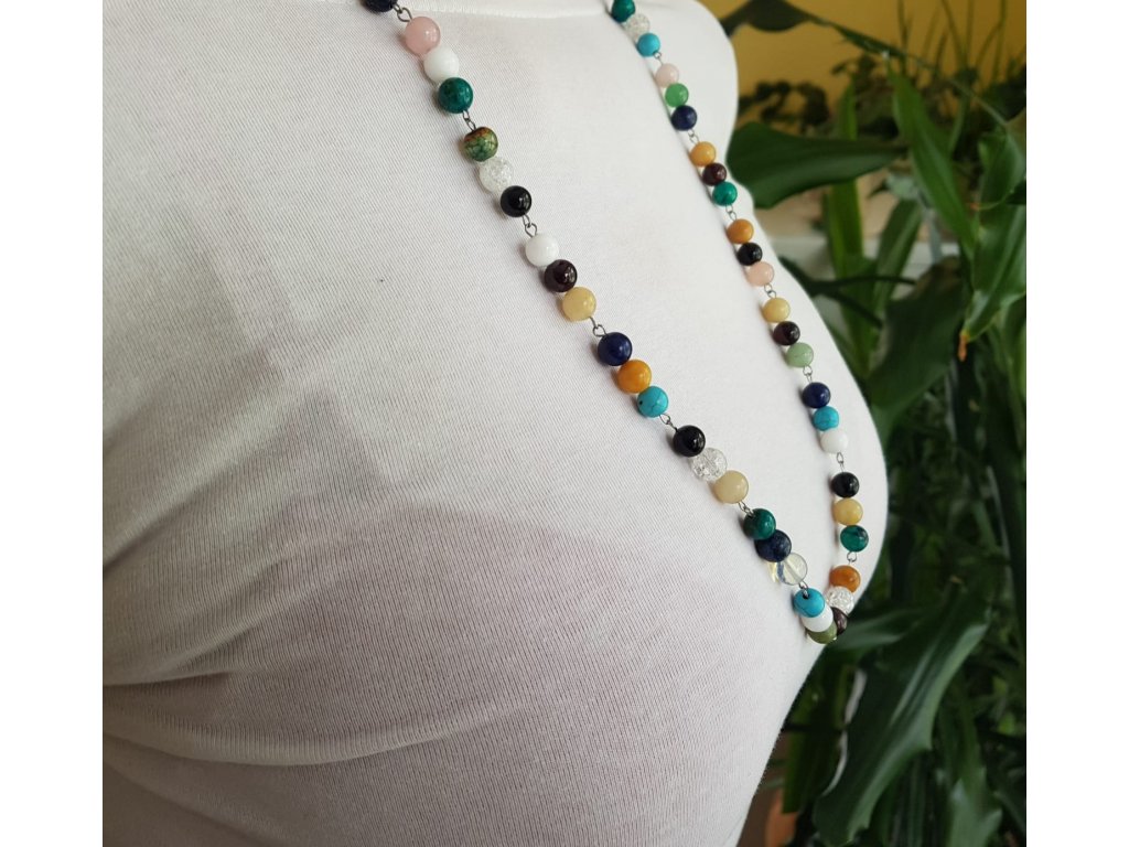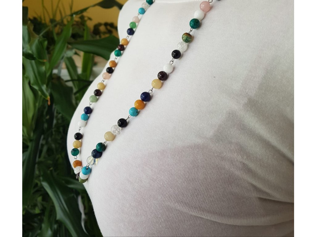 Avanturín, granát, lapis lazuli, tyrkys, růženín, křišťál, turmalín, onyx, sluneční kámen, nefrit, měsíční kámen... To vše v jednom náhrdelníku.