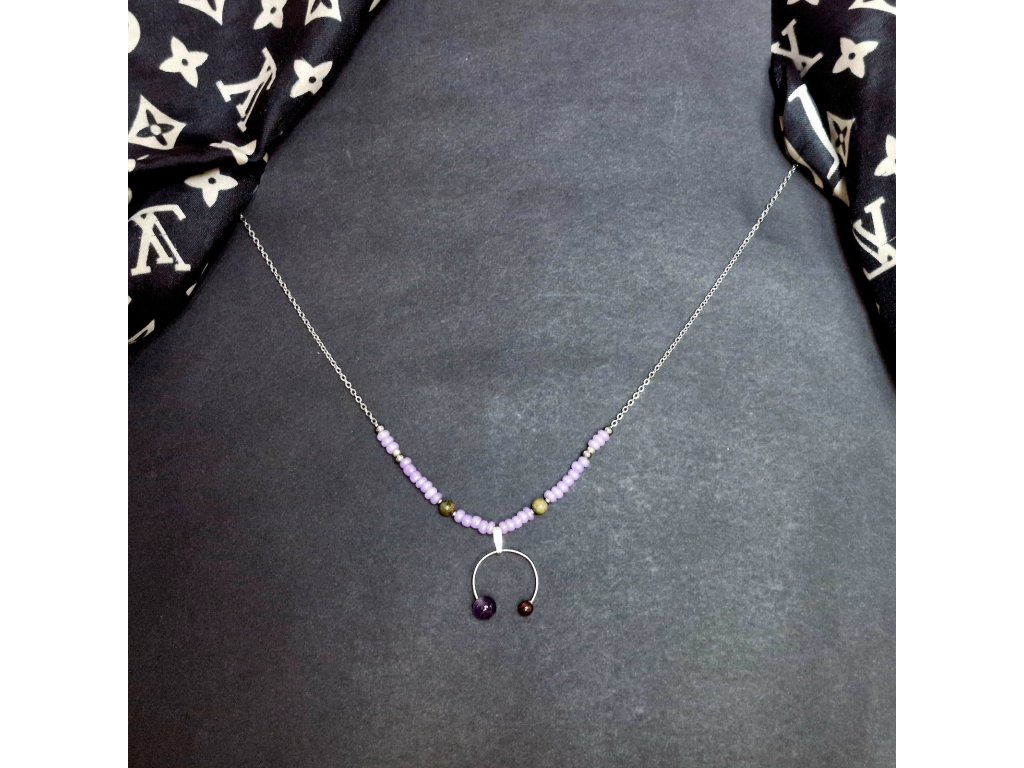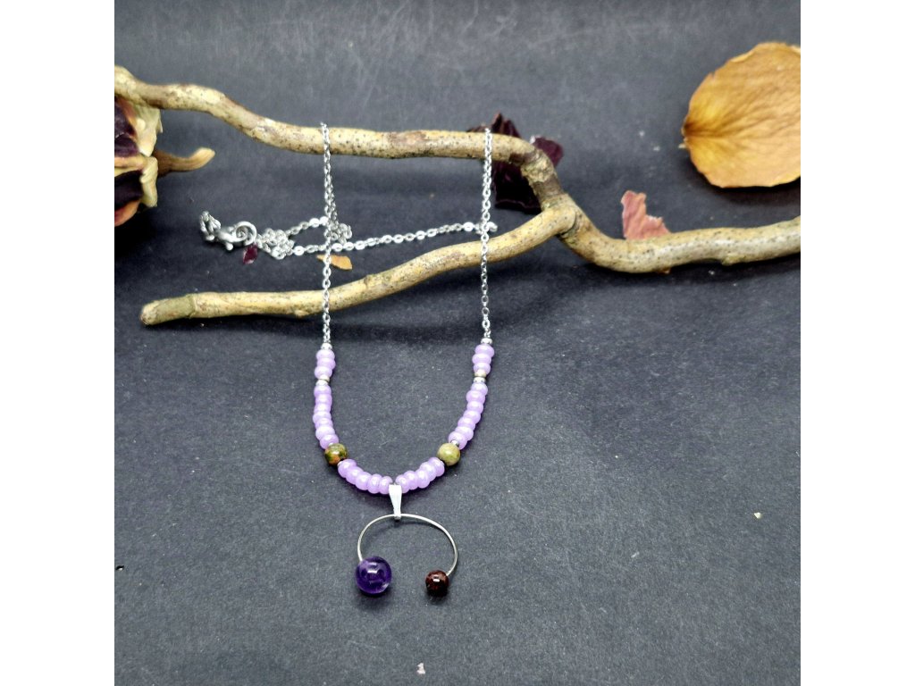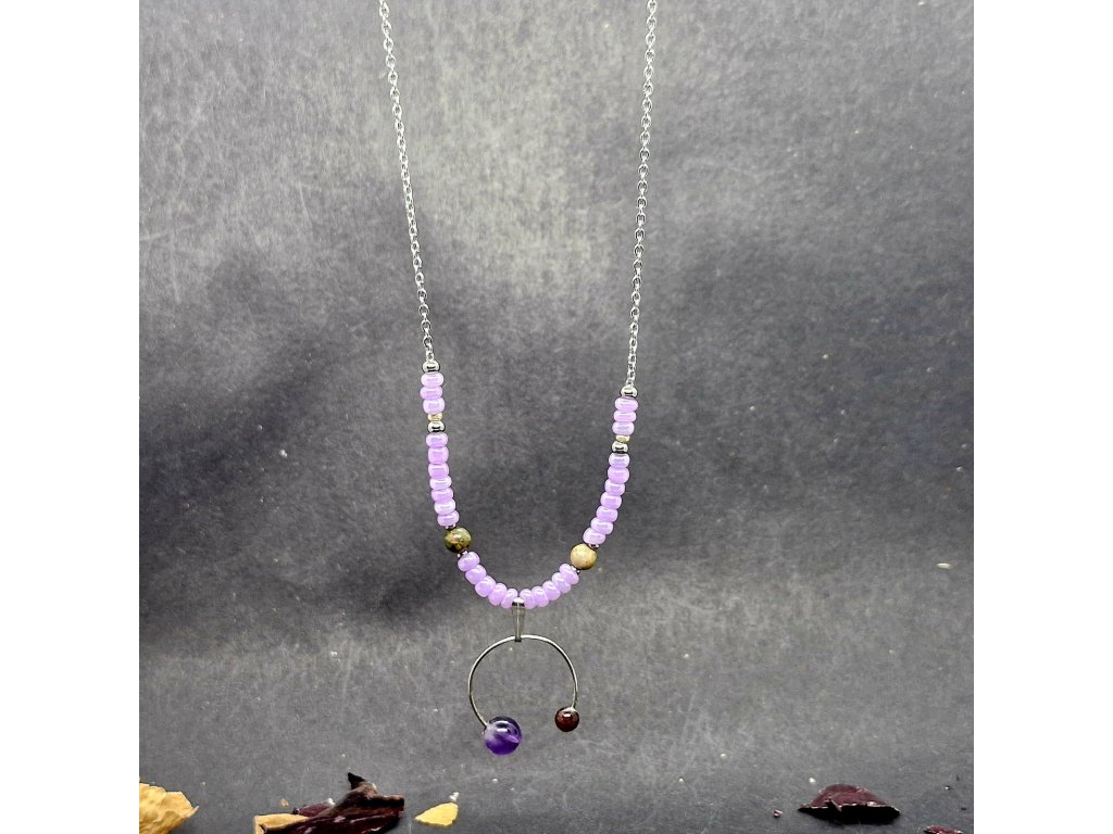 "Levander 2" Náhrdelník (nerezová ocel, rokajl, minerály)