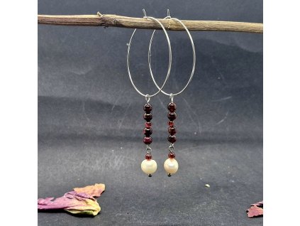 Nepravidelné náušnice z nerezové oceli s granátem a perlami.