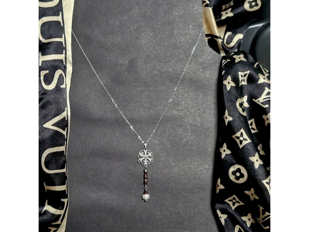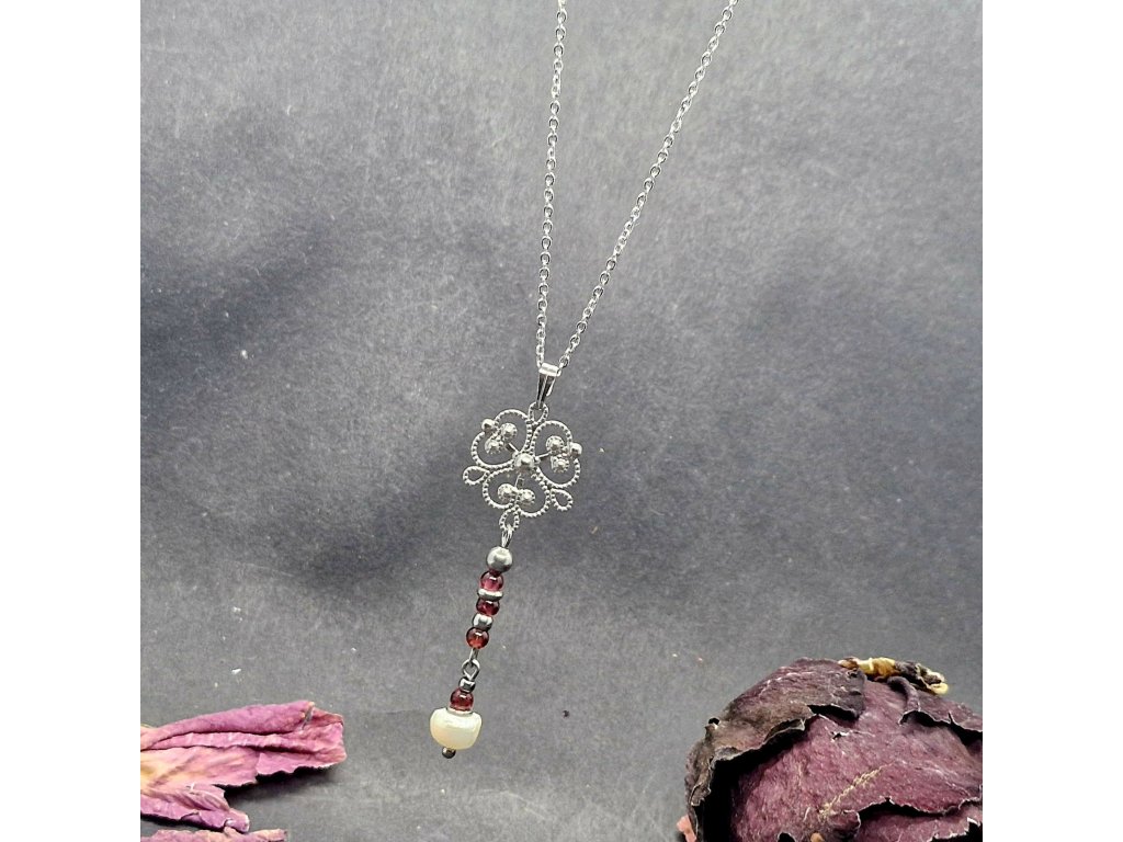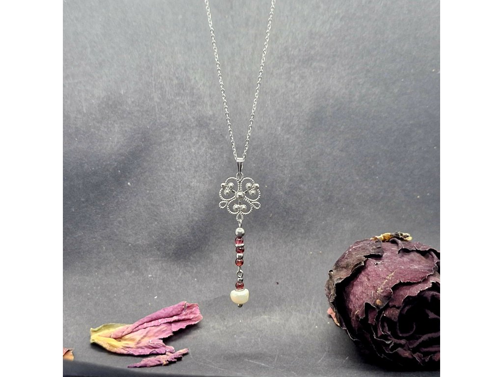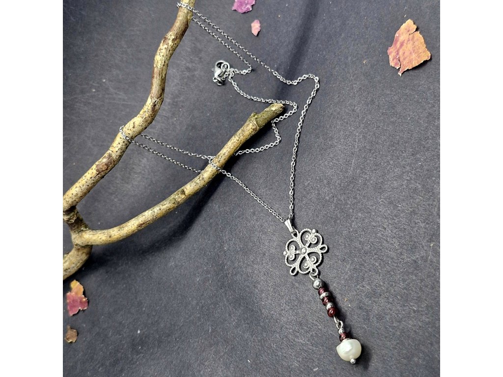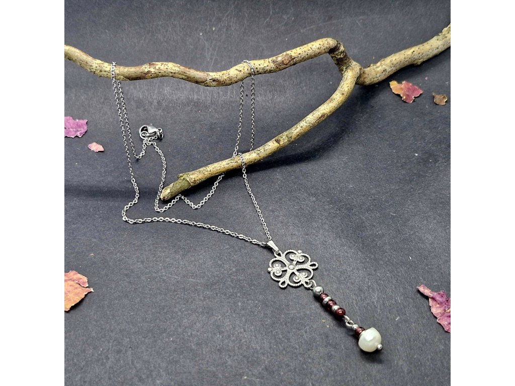 "Lilianna 8" Náhrdelník (granát, perla, ocel)