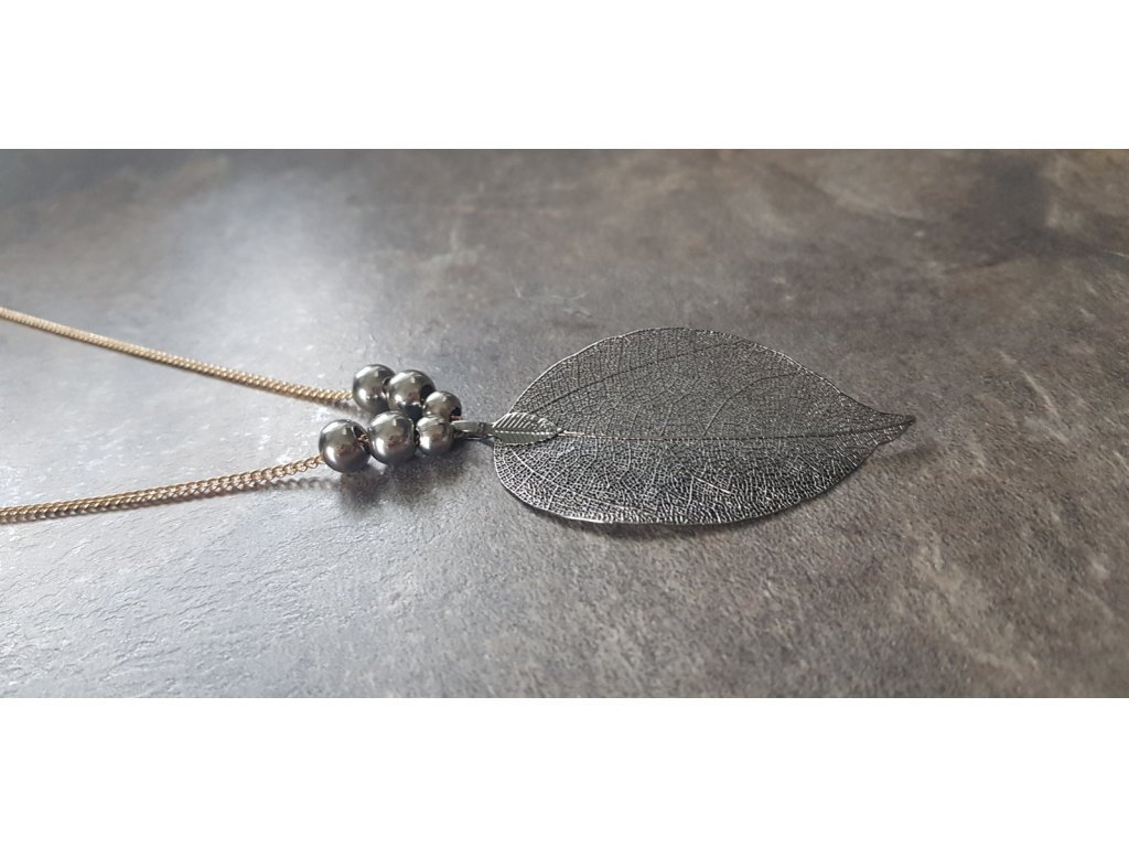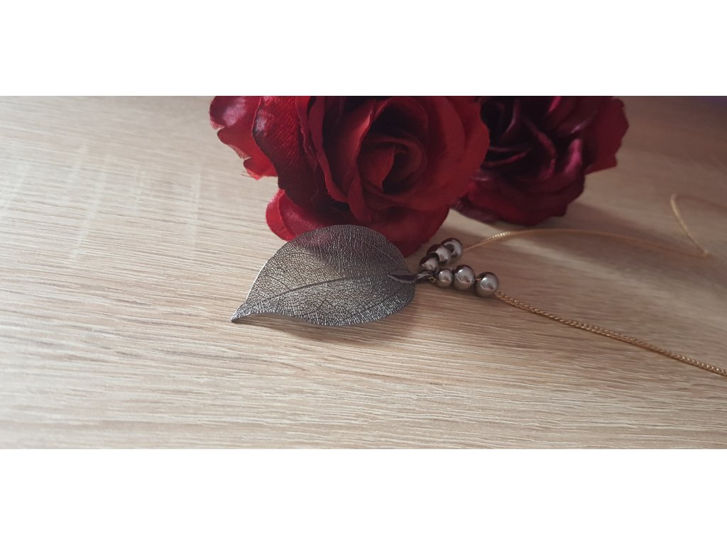 Rozměry: Délka náhrdelníku 71 cm. Průměr listu cca 6×3 cm.