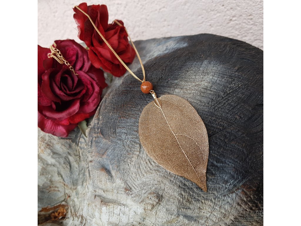 "Ynke Af" Náhrdelník (pravý list, sluneční kámen)