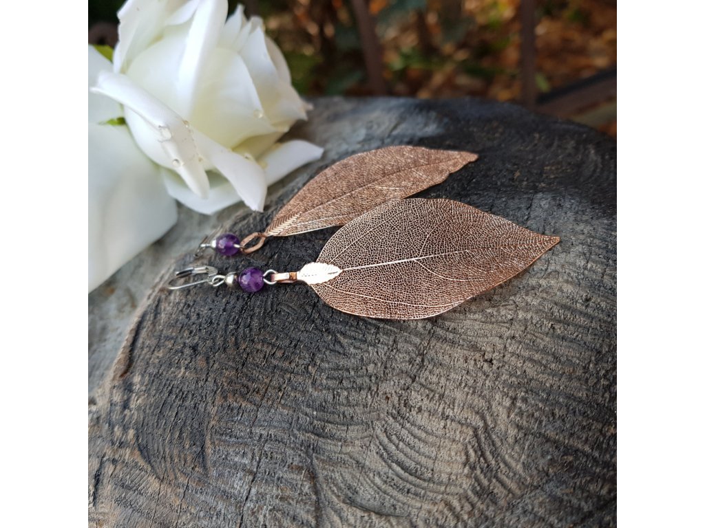 "Ynke Gz" Náušnice (pravý list, ametyst, nerezová ocel)