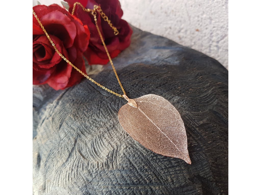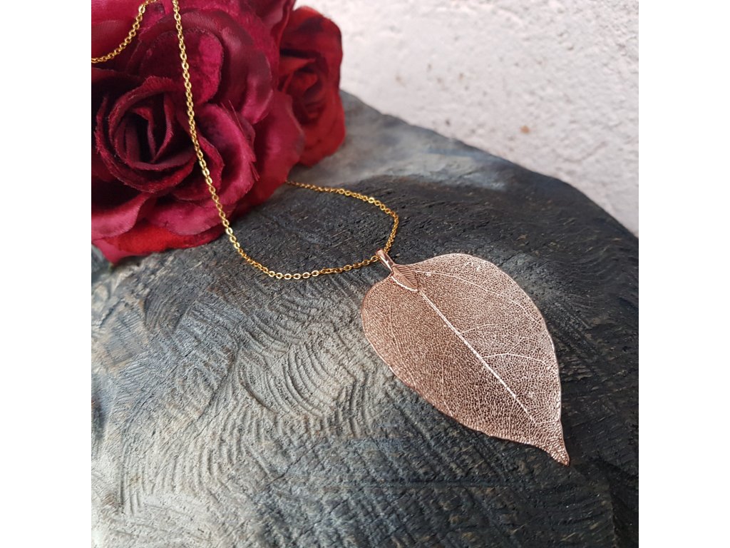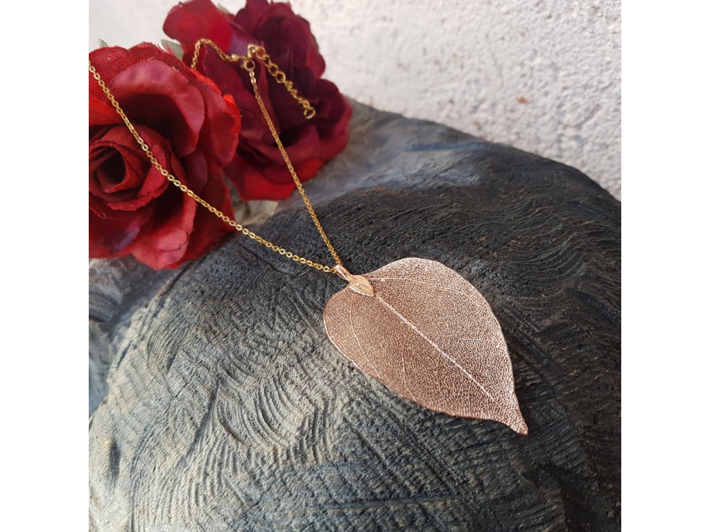 Originální a velice ženský náhrdelník. Přívěsek je tvořen z přírodního listu, který je speciálně upraven pokovením a zavěšen na řetízku z pozlacené nerezové oceli.