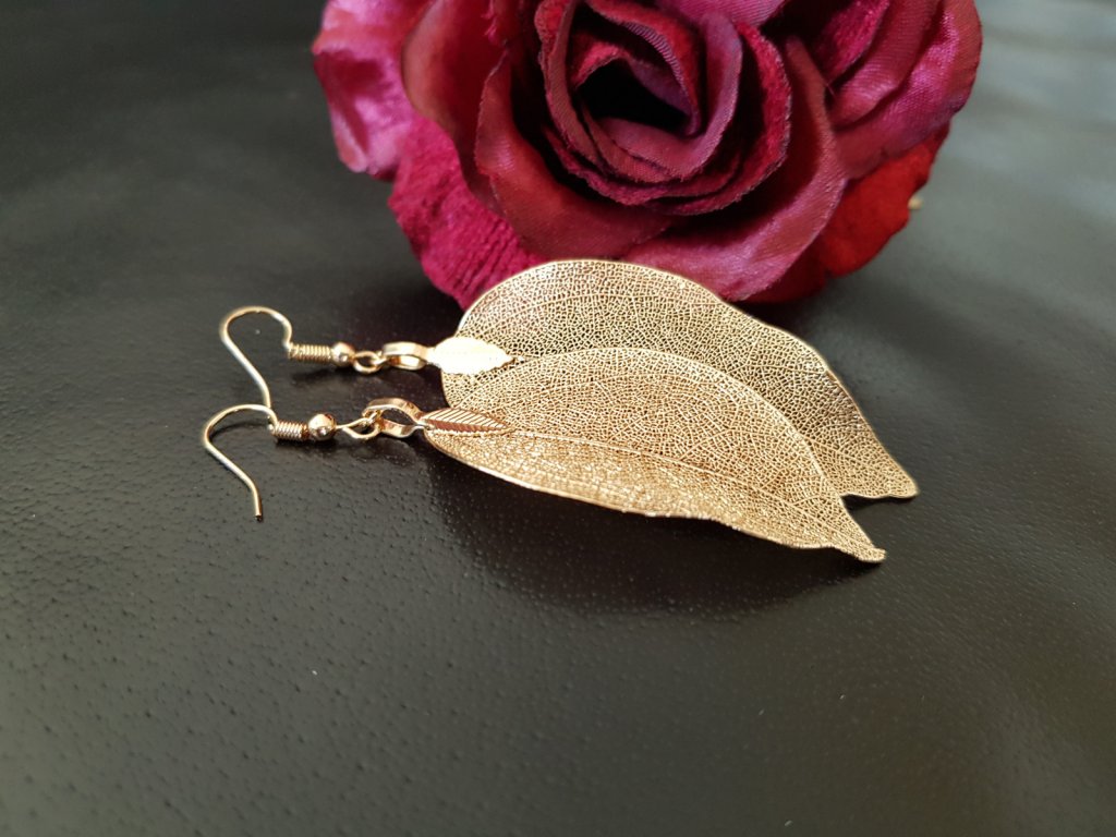 Rozměry: Délka náušnic včetně háčku cca 6 cm. Průměr listů cca 4×3 cm. Délka náhrdelníku 50 cm.