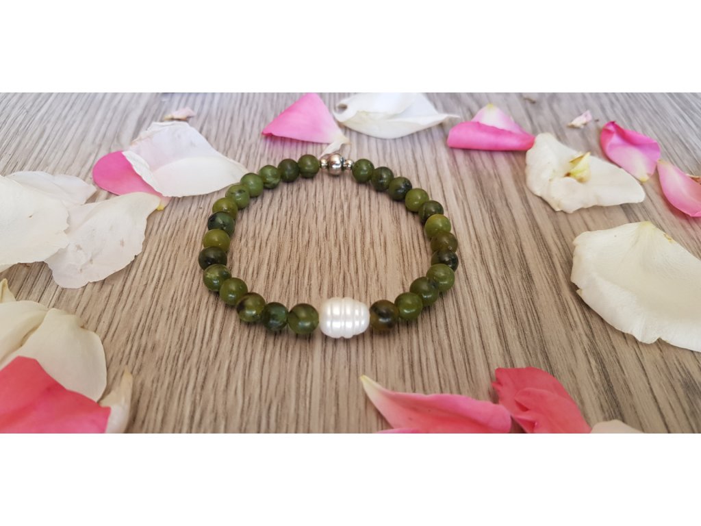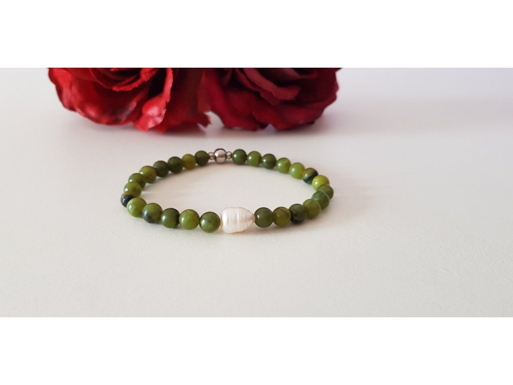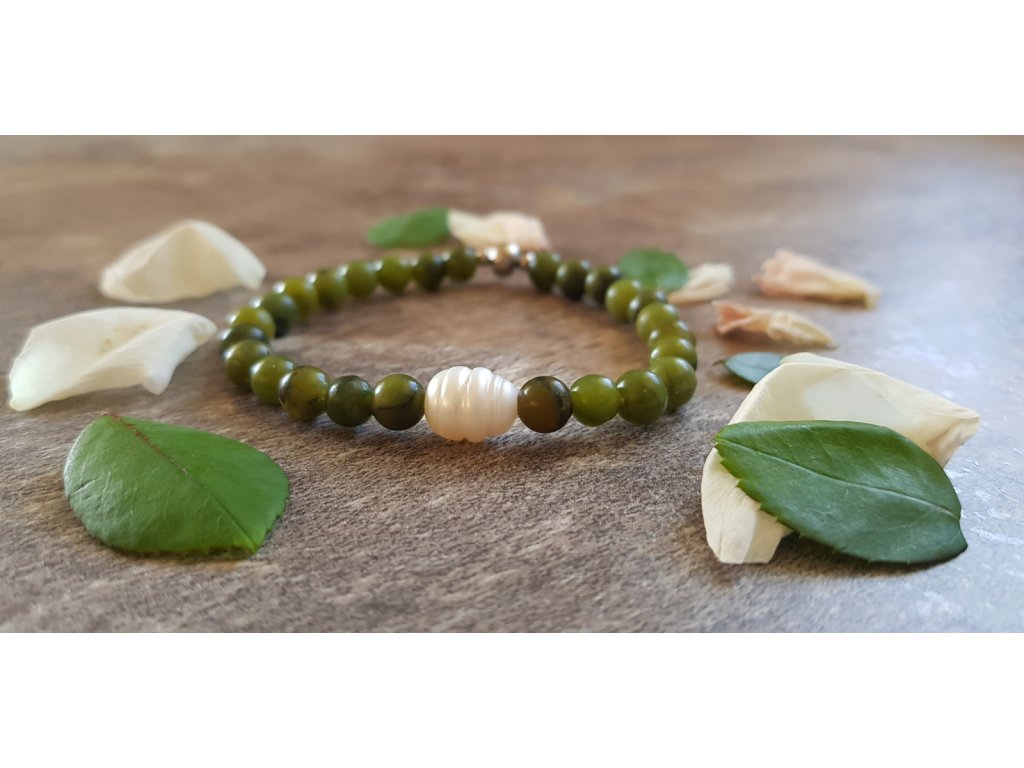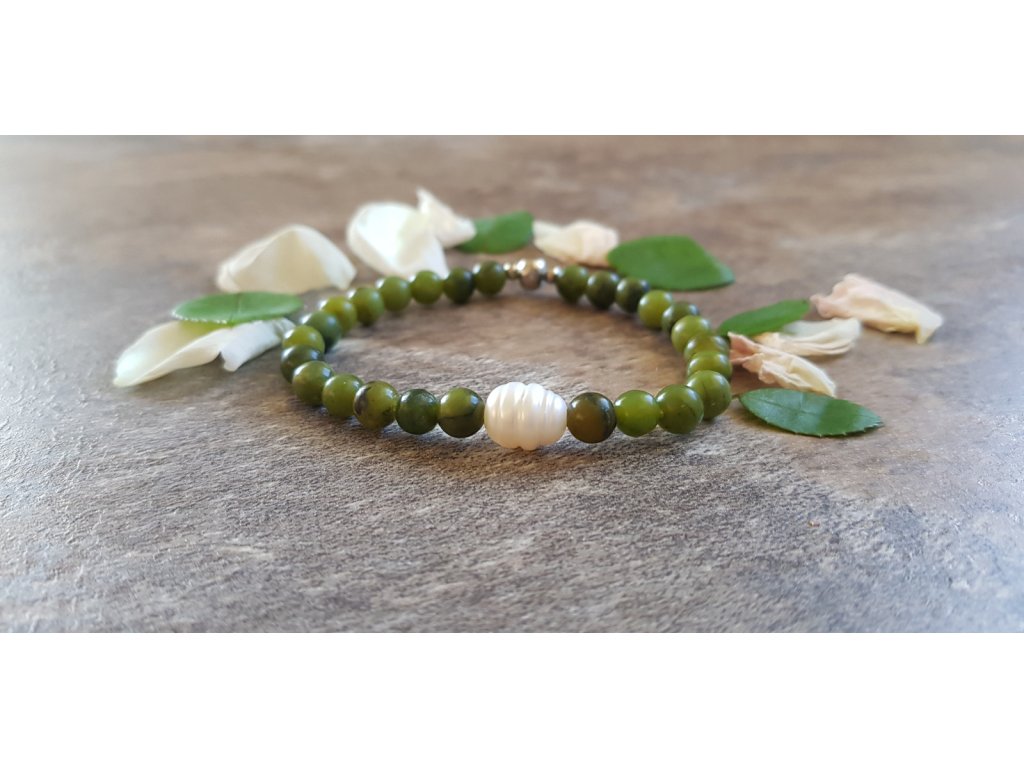 "Pawe" Náramek (taiwanský jadeit, perla)