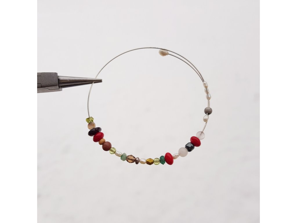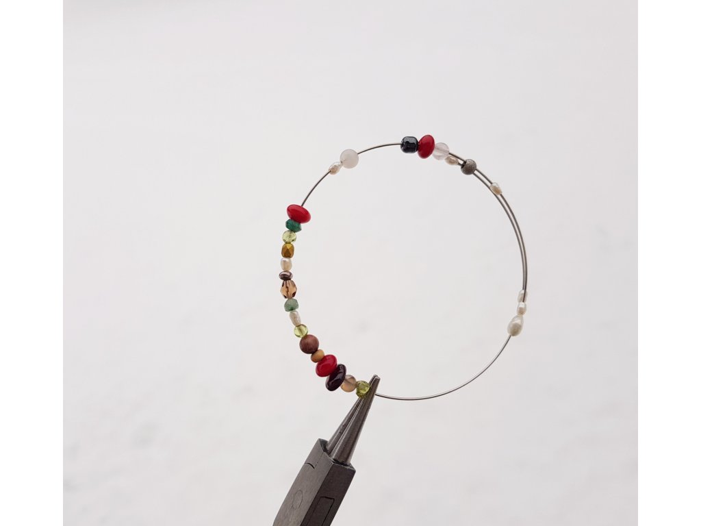 Náramek je z pružné paměťové oceli, tudíž se přizpůsobí téměř každému zápěstí. Je lehoučký jako pírko a díky slabému drátku nádherně vyniknou minerály, které se volně pohybují (levitují).