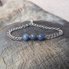 Použili jsme masivnější řetízek z kvalitní nerezové oceli, na kterém jsou napevno zakomponované kuličky přírodního lapis lazuli a rondelky z chirurgické oceli.