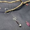 Použili jsme dva druhy řetízků z velmi kvalitní nerezové oceli, pravou sladkovodní perlu a kuličku rodonitu, která je zavěšena na jedné straně. Přívěsek kočičky je z chirurgické...