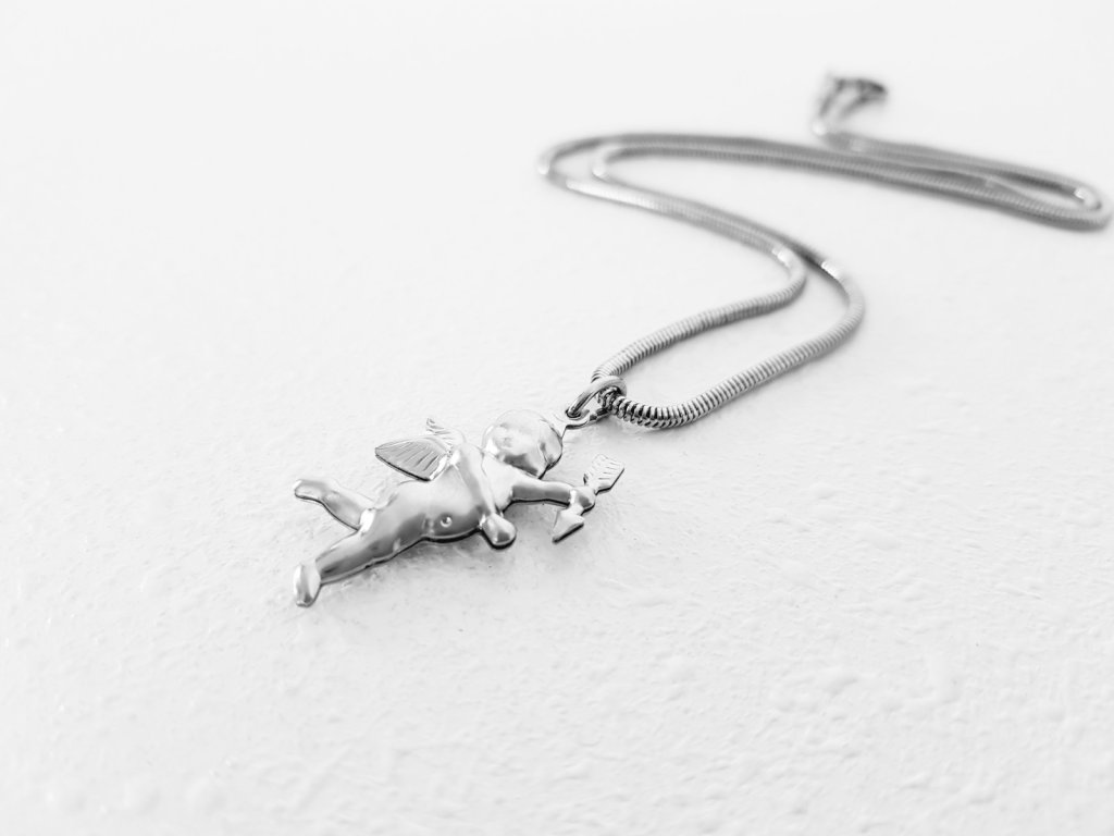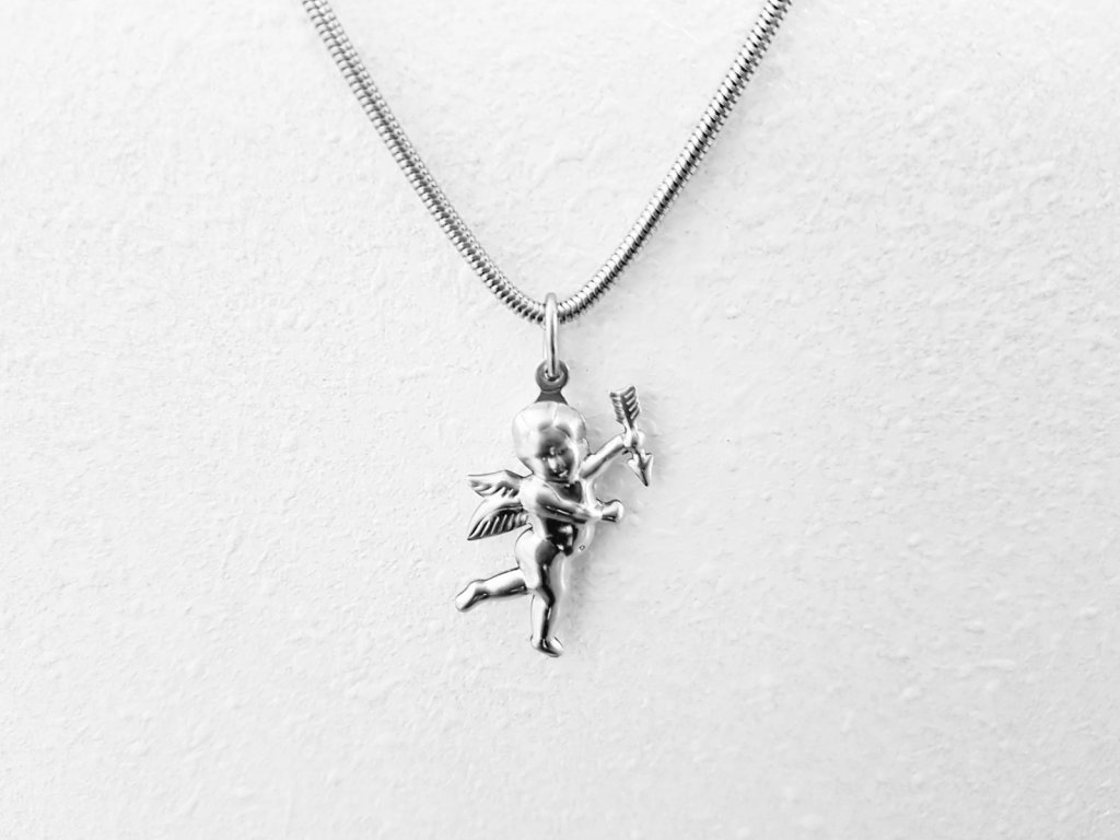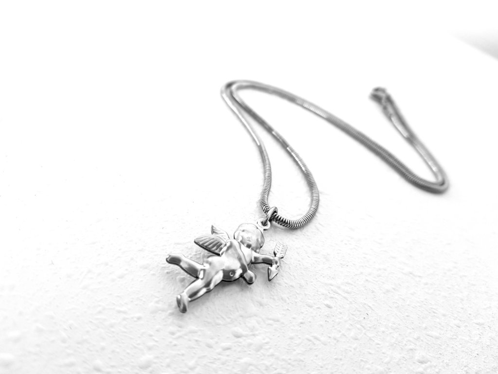 Amor... Bůh lásky... Přívěsek je z chirurgické oceli, zavěšen na na hadím řetízku z velmi kvalitní nerezové oceli, která nemění barvu ani tvar a je vhodná i pro alergiky.