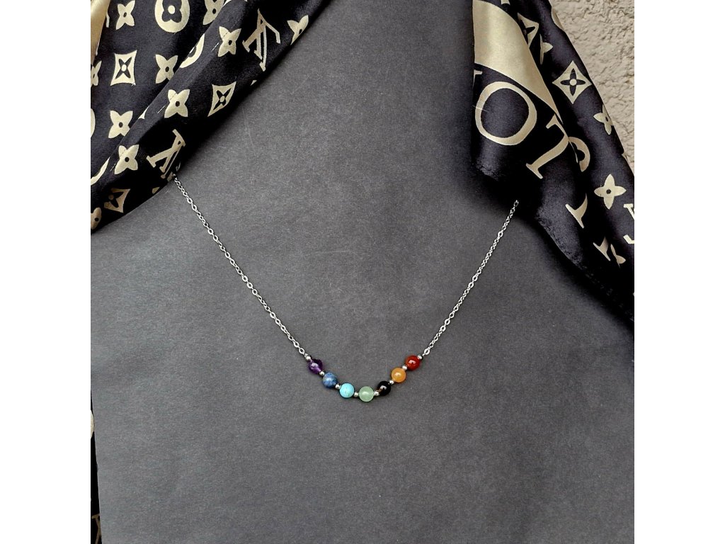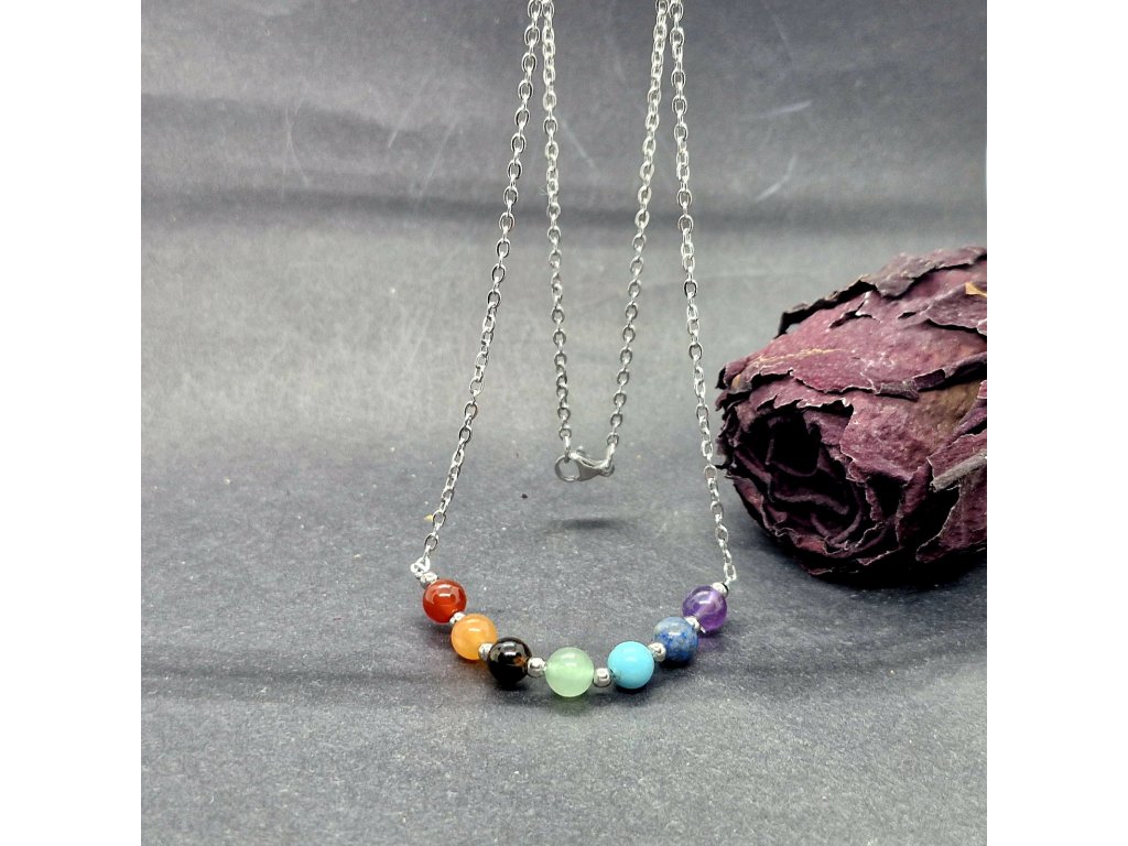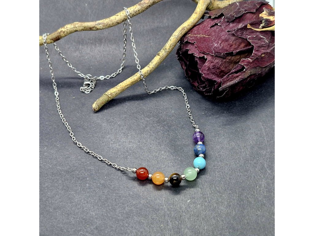 Najděte svůj střed v každodenním shonu. Tento náhrdelník spojuje sílu sedmi vybraných minerálů, které odpovídají sedmi hlavním energetickým centrům – čakrám – ve vašem těle. Od uzemňujícího ametystu po projasňující karneol. Každý kámen je pečlivě vybrán, aby vám pomohl udržet harmonii mezi tělem a myslí. Odolný nerezový řetízek symbolizuje vaši vnitřní pevnost a zajistí, že vás tento amulet bude provázet dlouhé roky.