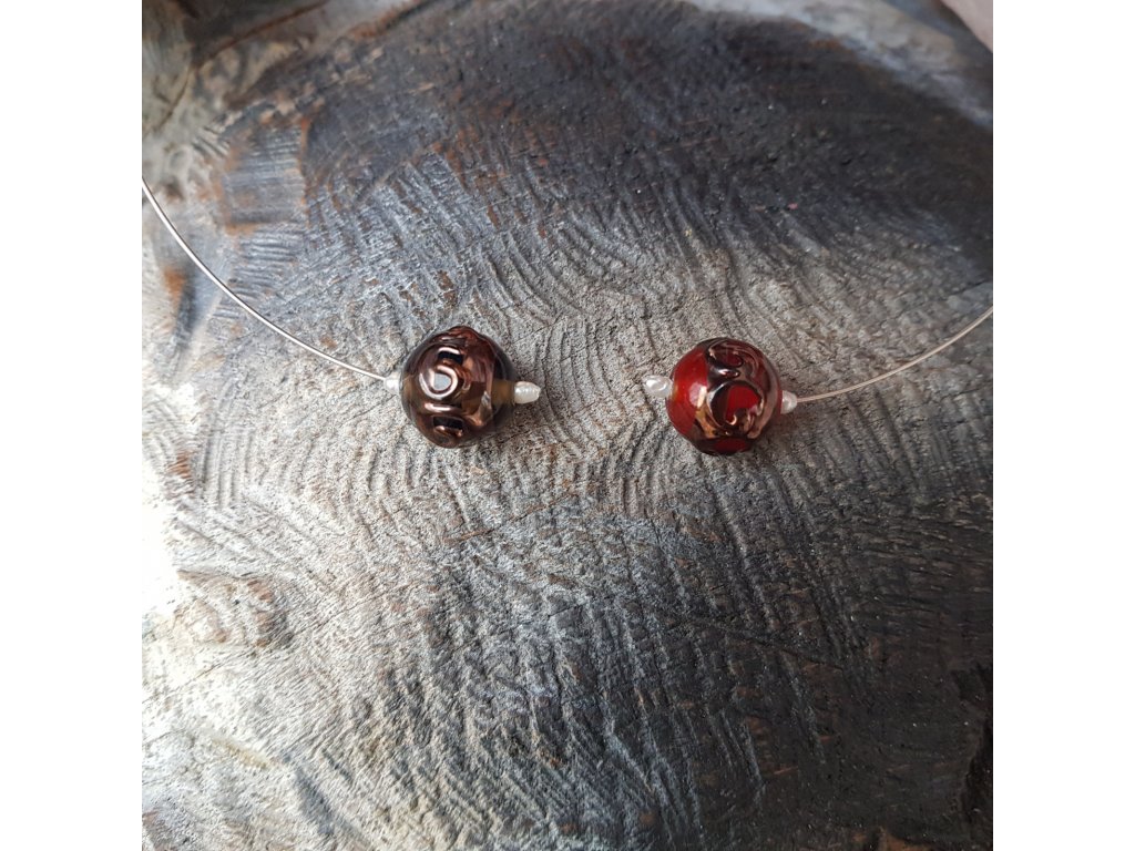 "Levitace 4" Náhrdelník (vinuté sklo, perličky)
