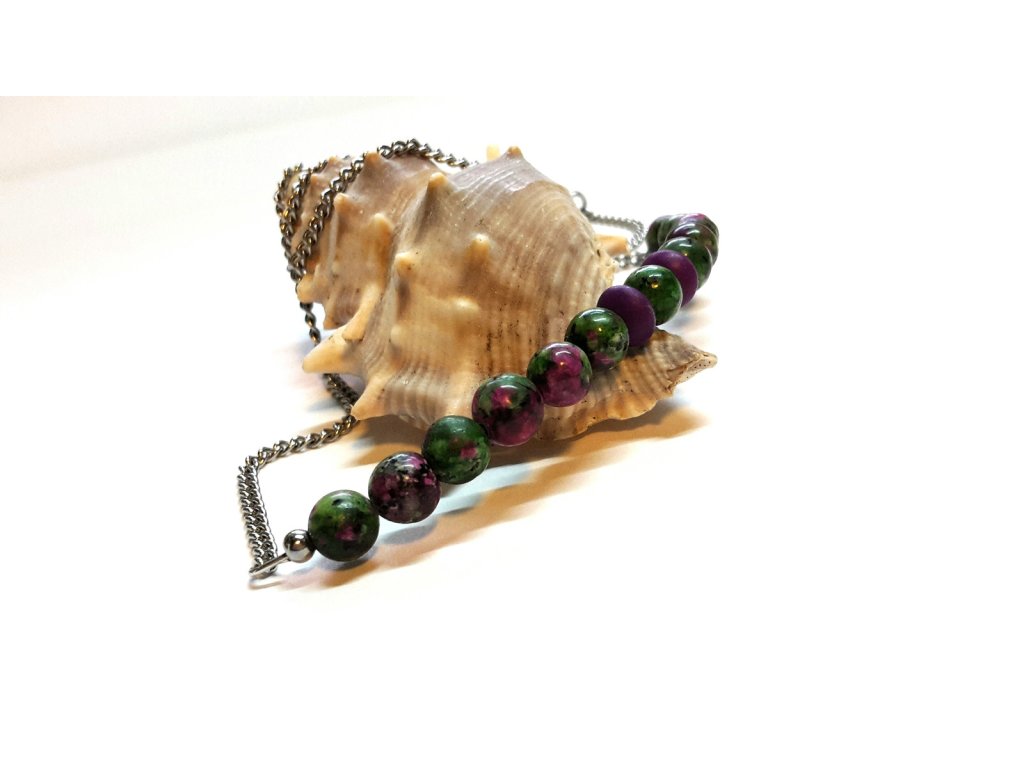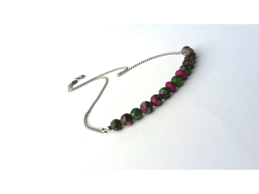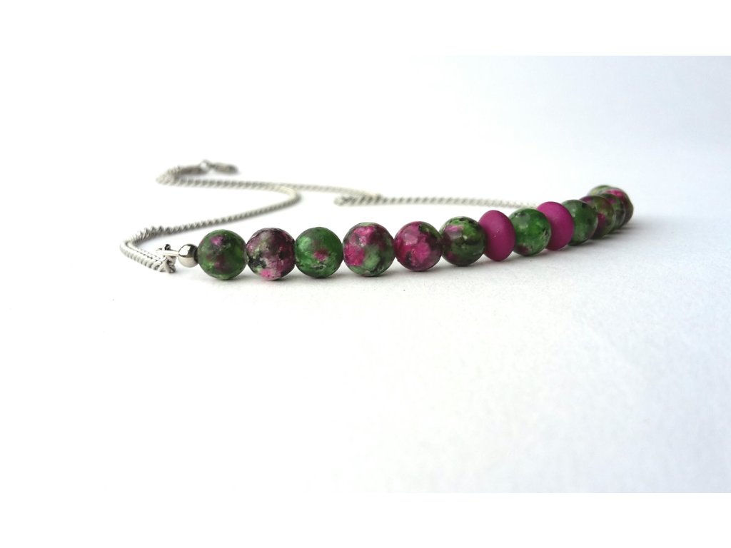 "Milli" Náhrdelník (ocel a zoisit s rubínem)
