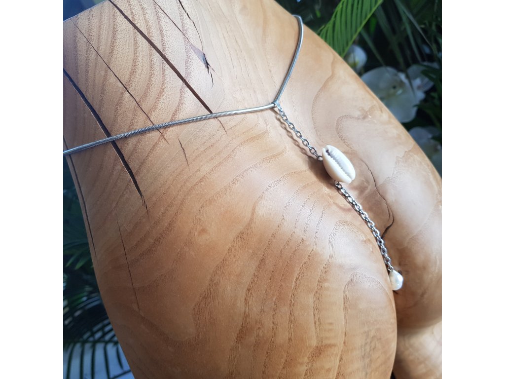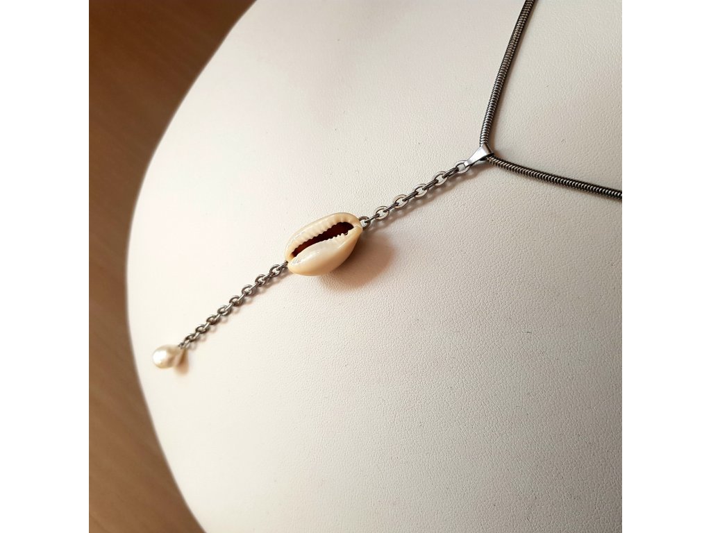 "Shell Mia" Náhrdelník (nerezová ocel, perla, mušle)