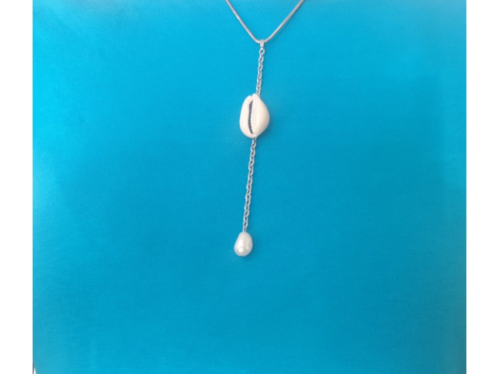 Další kousek z kolekce Shell. Minimalistický a přitom extravagantní náhrdelník, jehož dominantou je přívěsek s pravou mušlí a sladkovodní perlou.