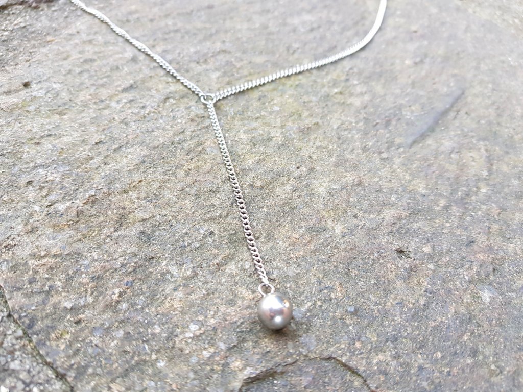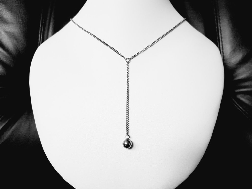 Náhrdelník pro zvýraznění ženskosti :-). Část okolo krku je dlouhá 50 cm. Přívěsek s kuličkou měří 8 cm a míří přesně tam... aby působil žensky a hodně sexy ;-).