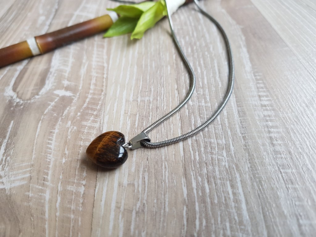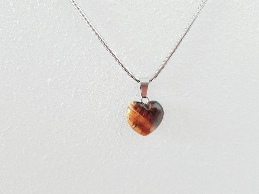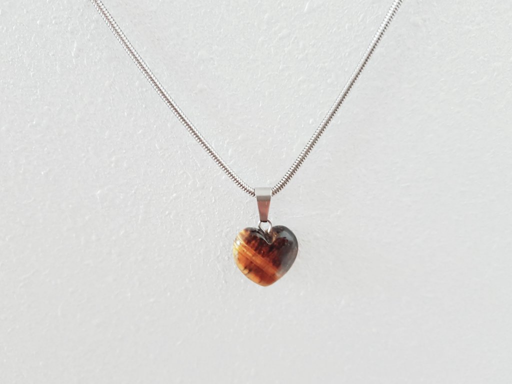 Náhrdelníček plný lásky :-). Přívěsek srdíčka z tygřího oka je zavěšen na hadím řetízku z velmi kvalitní nerezové oceli, která nemění barvu ani tvar a je vhodná i pro alergiky.