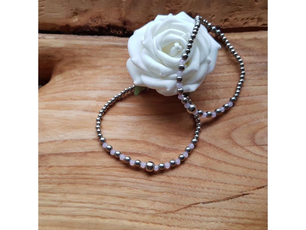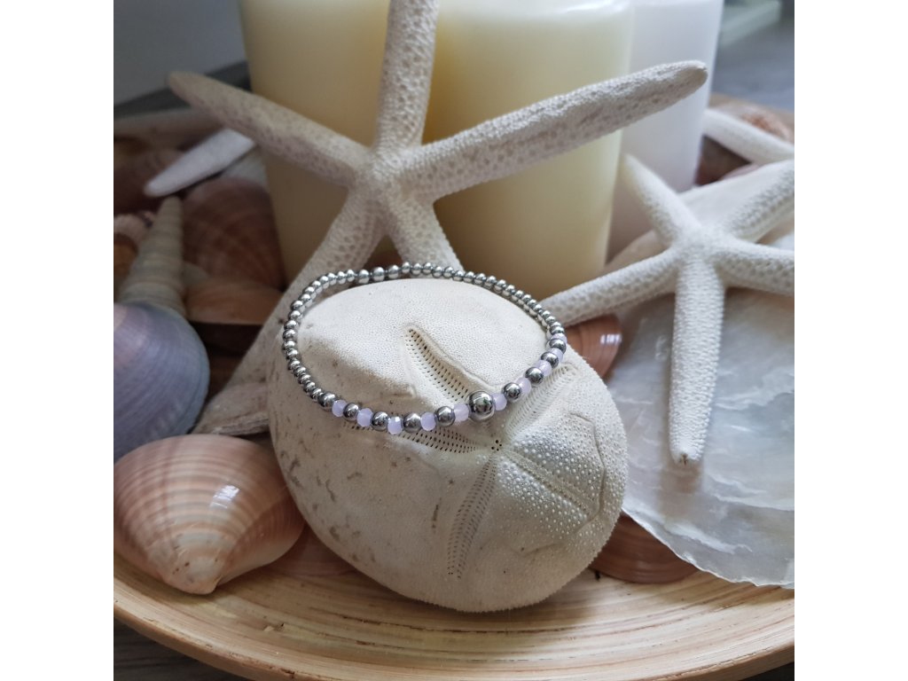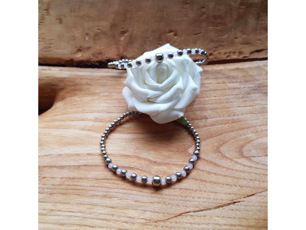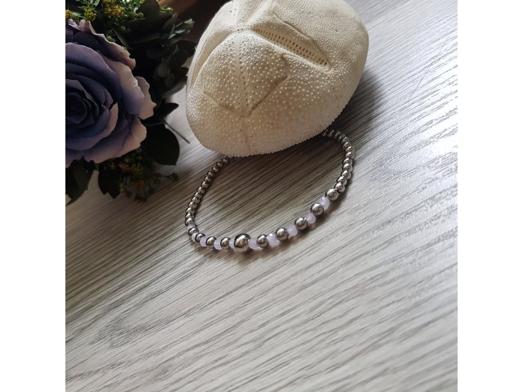 Jemný a velmi něžný náramek pro každou příležitost. Použili jsme droboučké korálky z chirurgické oceli a růžové broušené kamínky.