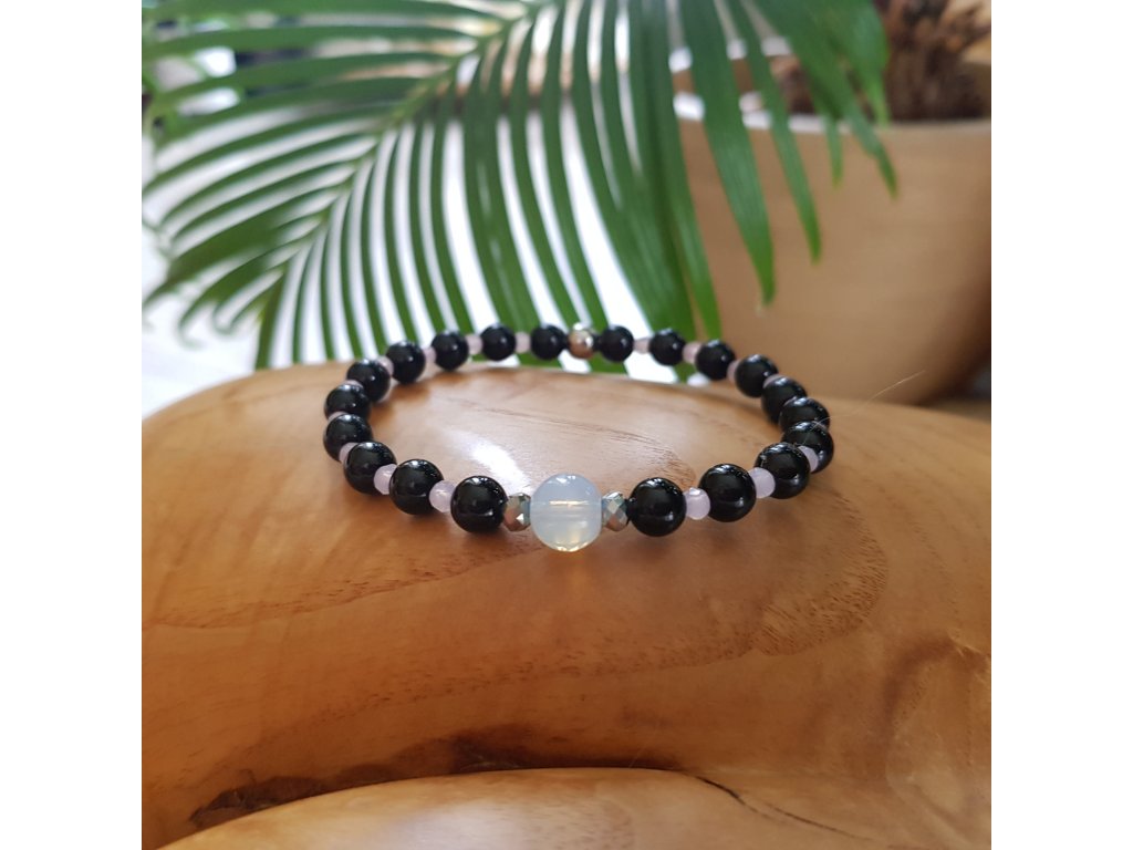 Jemný a velmi elegantní náramek pro všední i slavnostní dny. Vytvořili jsme ho z kuliček růženínu, hematitu a broušených korálků.