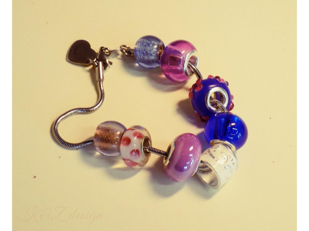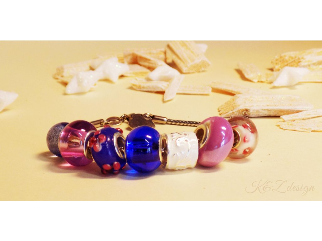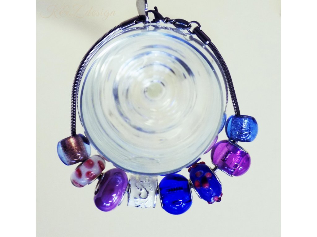 Luxusní náramek. Základem je hadí řetízek z velmi kvalitní nerezové oceli, na kterém jsou navlečeny vinuté perle s ocelovým a Ag středem + kovové korálky s perličkami a kamínky....
