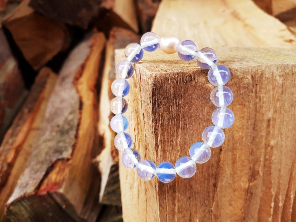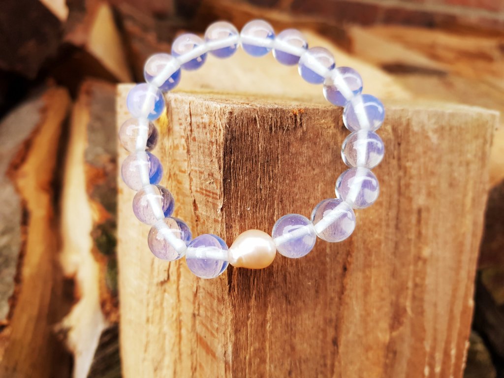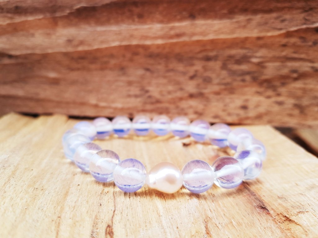 Náramek je tvořen z opalitu o průměru 10 mm a růžové sladkovodní perly. Opalit se používá ke zlepšení nálady, podporuje relaxaci. Je vhodný k posílení emoční síly během období stresu. Pouze 2 kusy za akční cenu!