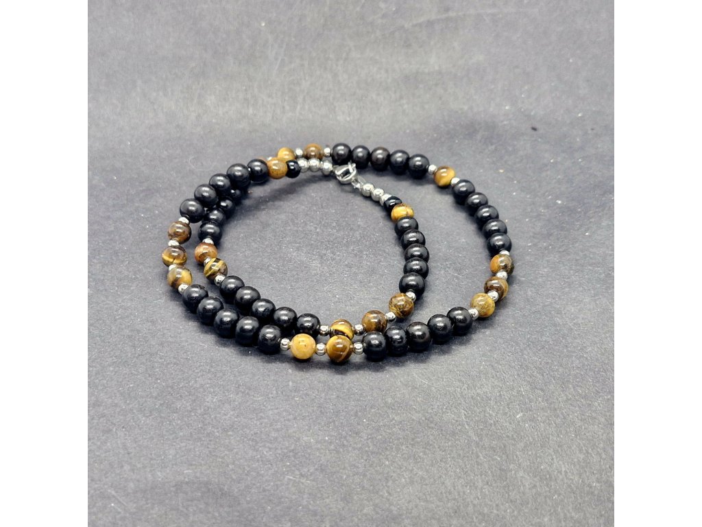 Tento šperk není pro každého – je pro muže, kteří se nebojí vyčnívat. Hluboká čerň vzácného ebenu tvoří dokonalý podklad pro fascinující hru světla v tygřím oku. Tento minerál je odedávna považován za kámen odvahy a odhodlání. Každý pohyb náhrdelníku odhalí jiný zlatavý odlesk, přesně jako pohled šelmy. Doplněk, který podtrhne vaši přirozenou autoritu a vnitřní sílu.