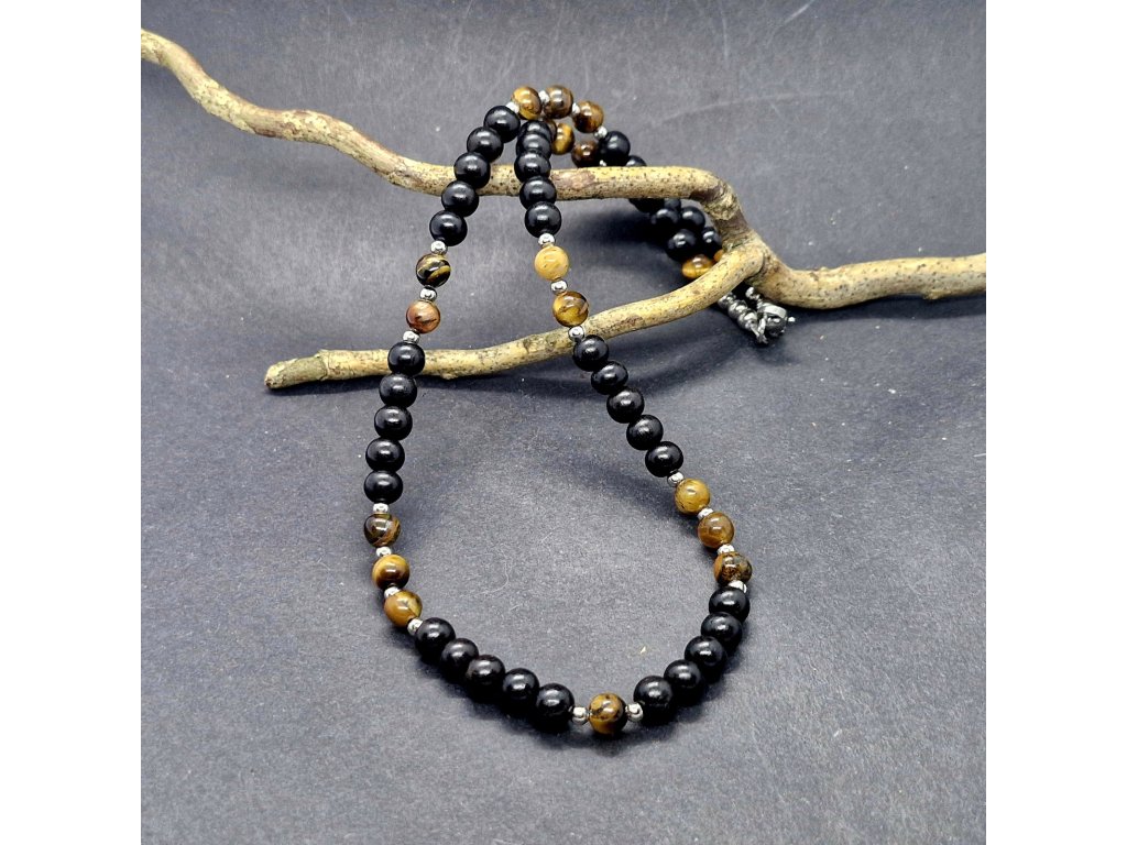 Energie šelmy...Náhrdelník z ebenu a tygřího oka.