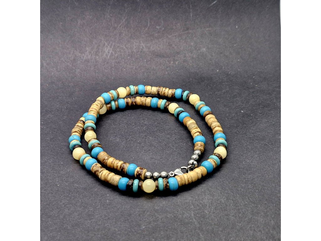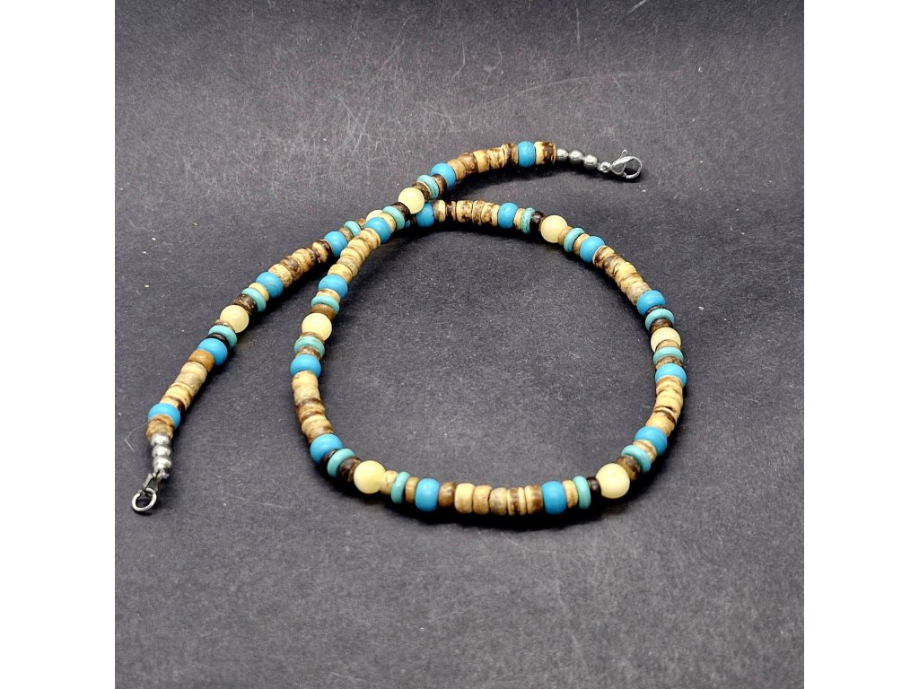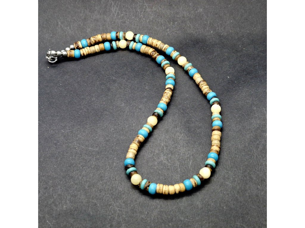 V zajetí přírody...Pánský náhrdelník. Je vyrobený z kokosových disků a tyrkenitu.