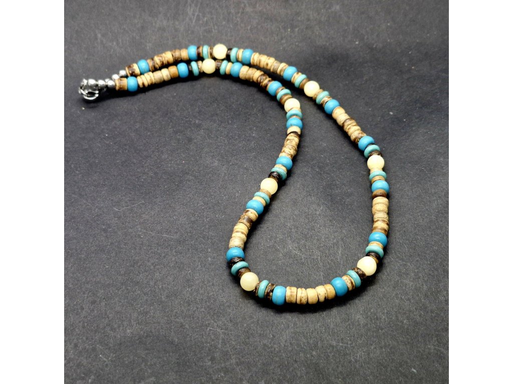 V harmonii barev...Pánský náhrdelník. Je vyrobený z kokosových disků, tyrkenitu a jadeitu.