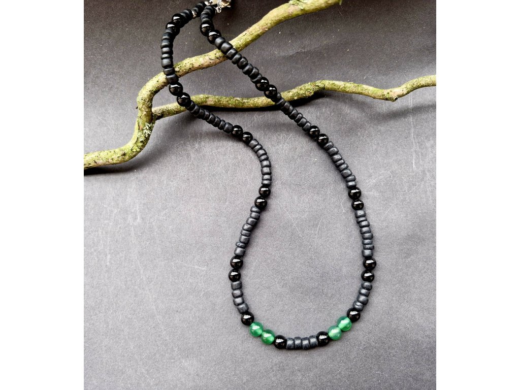 Síla, ochrana, sebedůvěra...Velmi originální autorský náhrdelník pro jedinečné muže. Použili jsme kuličky onyxu, mechového...