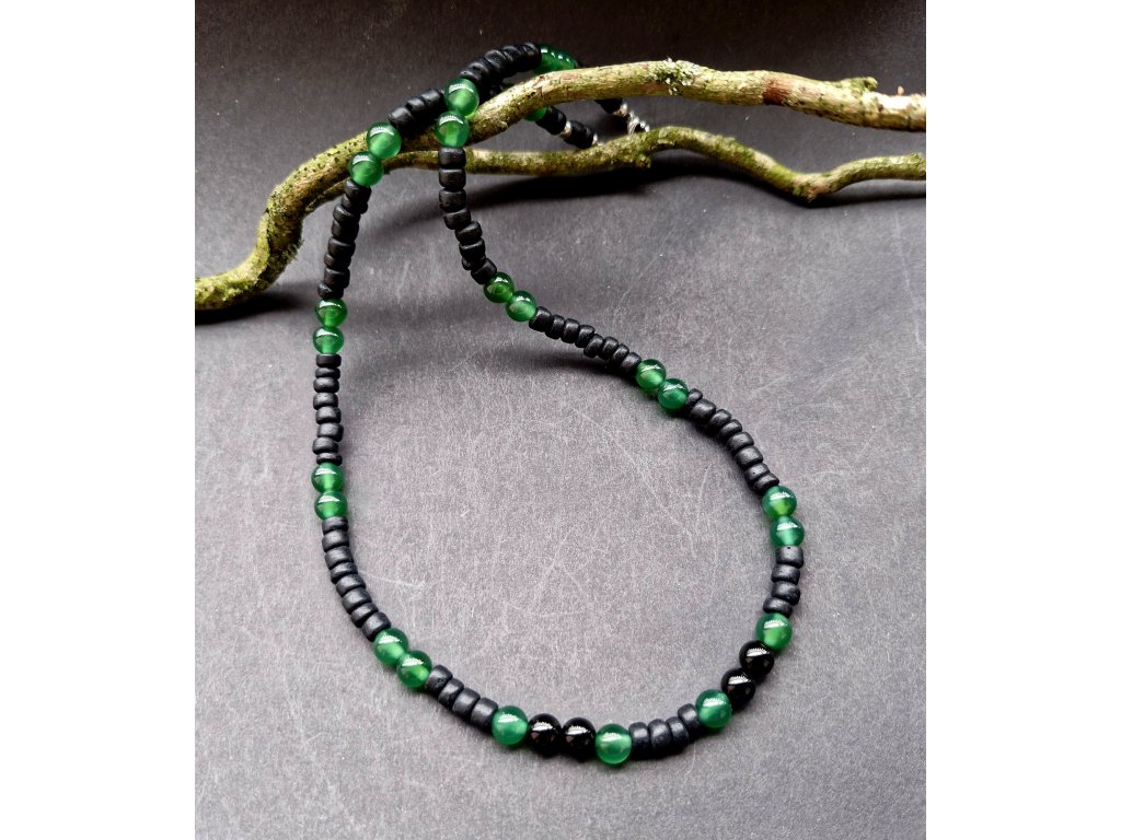 Pánský náhrdelník z kokosového dřeva, achátu a onyxu.