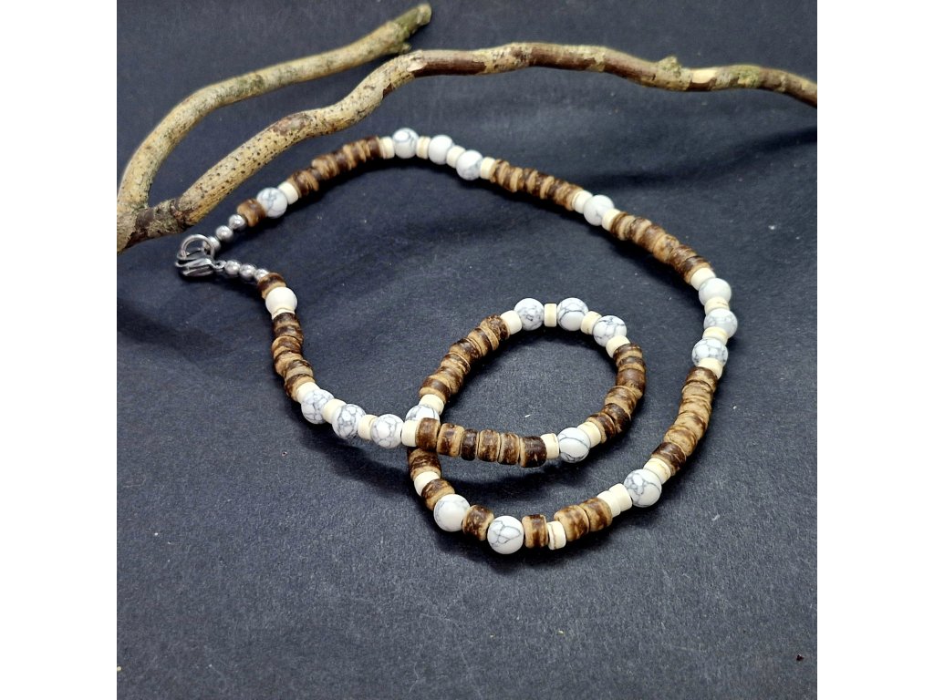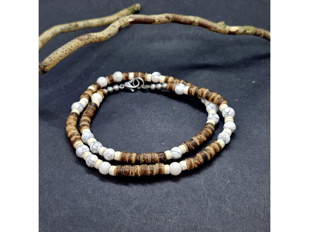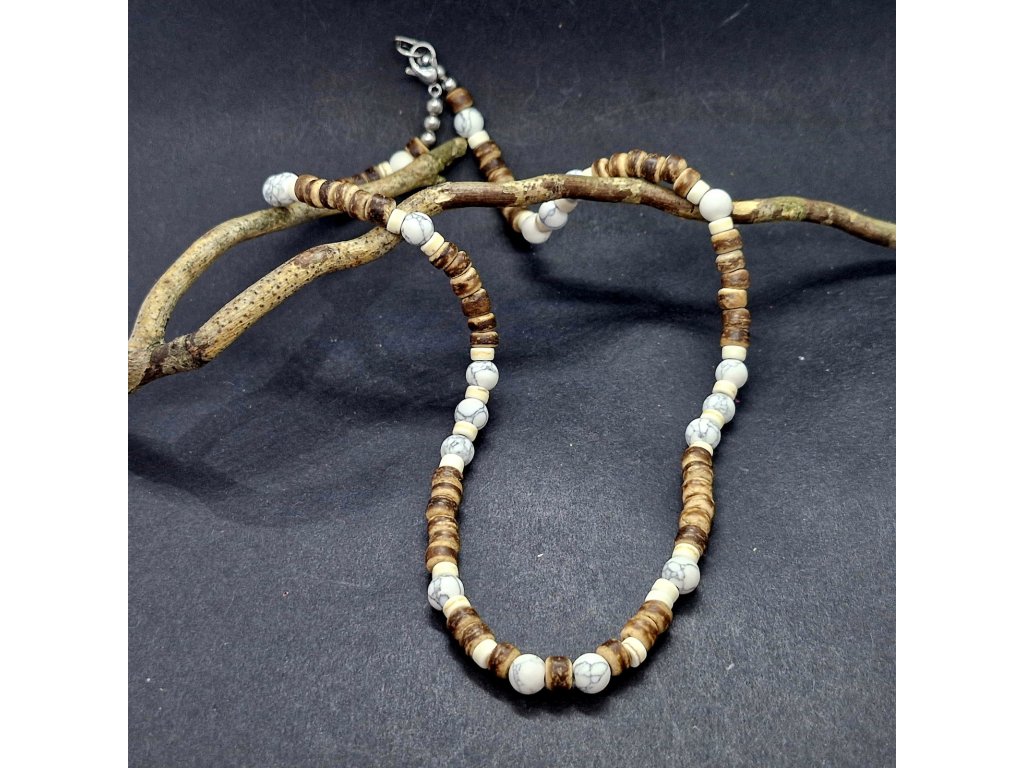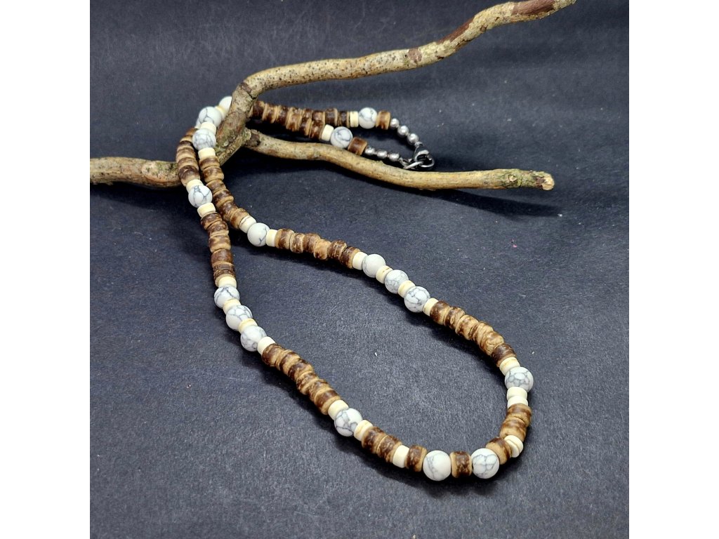 Pánský náhrdelník z kokosového dřeva a přírodního howlitu.