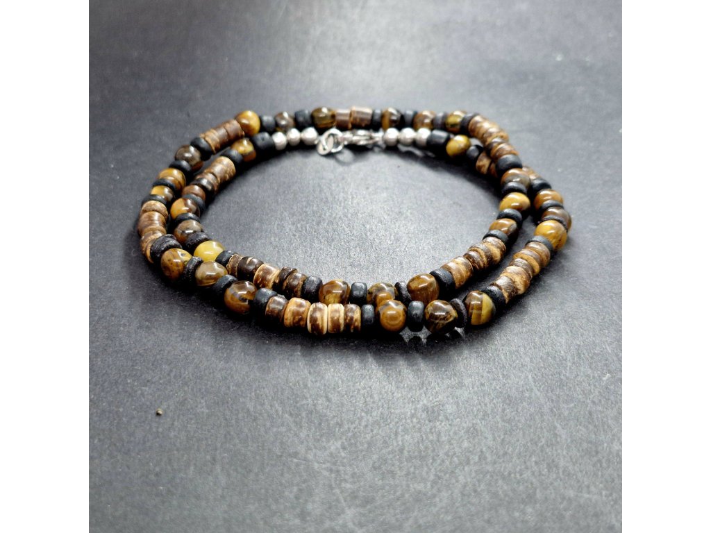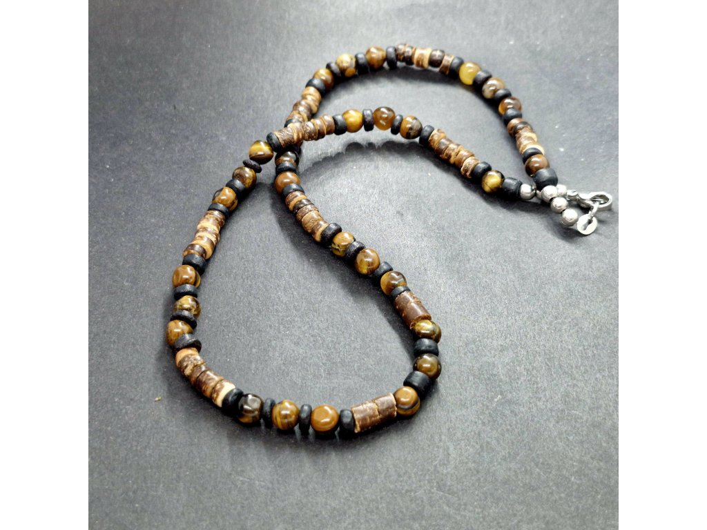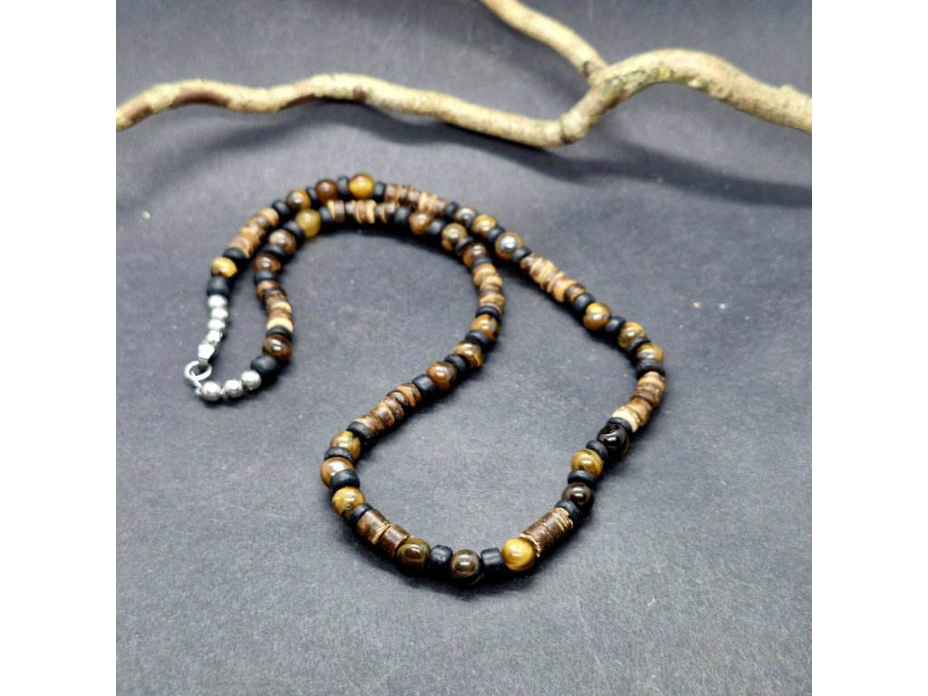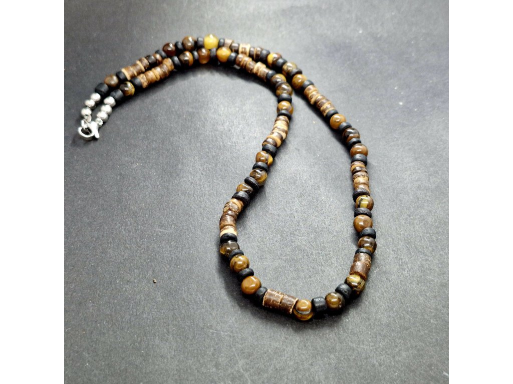 "Frenk 6" Pánský náhrdelník (kokos, tygří oko)