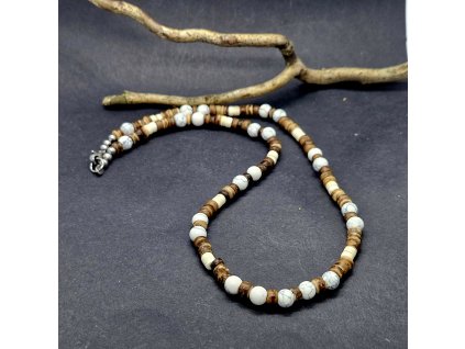 Pánský náhrdelník z kokosového dřeva a přírodního howlitu.