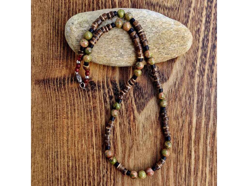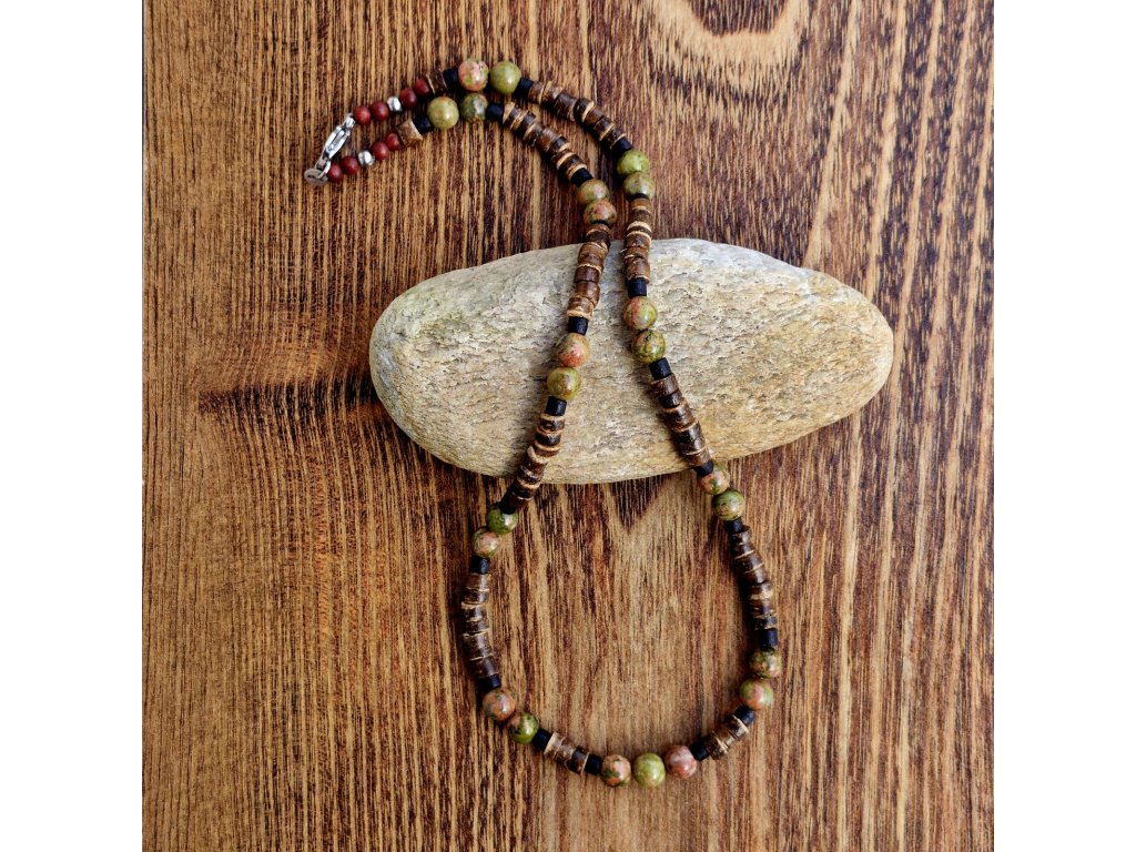 "Mark 3" Pánský náhrdelník (kokos, unakit, jaspis)