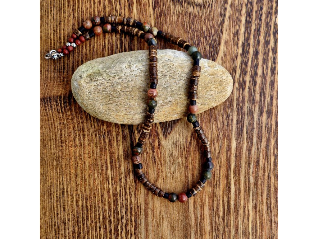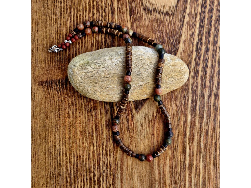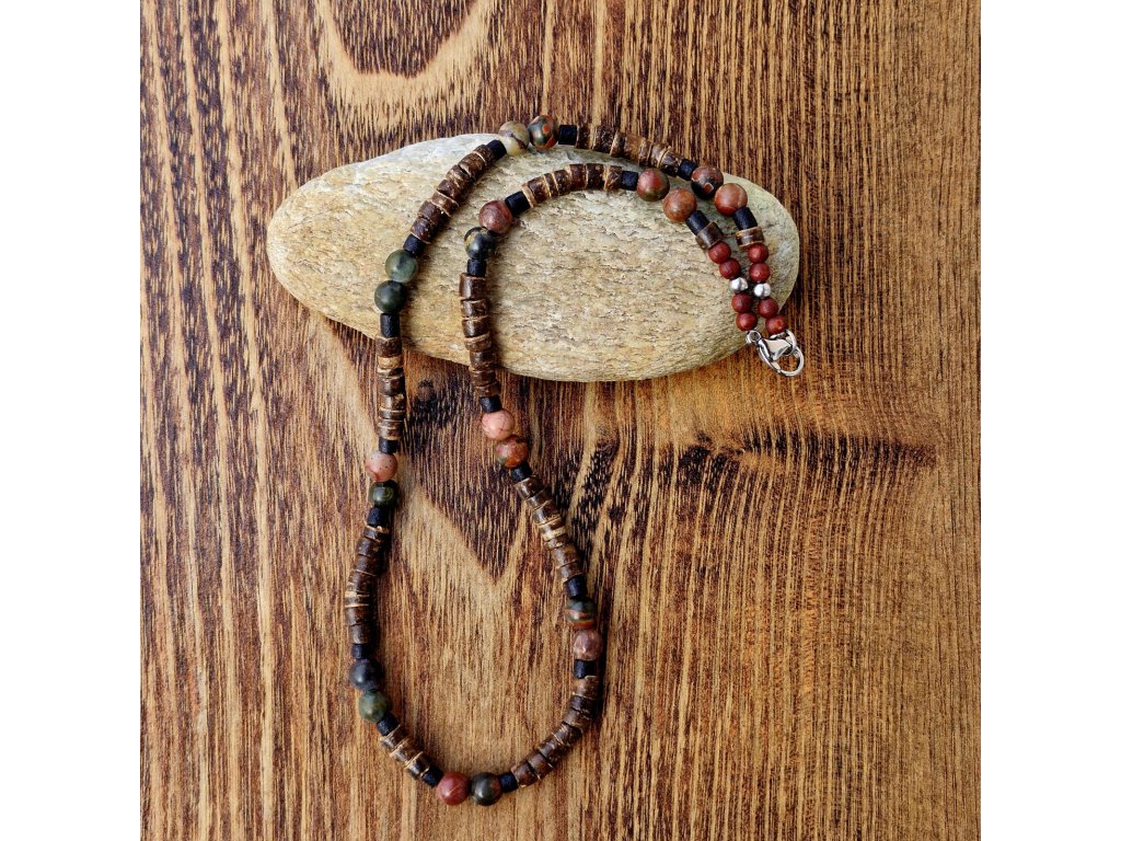 "Mark 4" Pánský náhrdelník (kokos, jaspis, unakit)