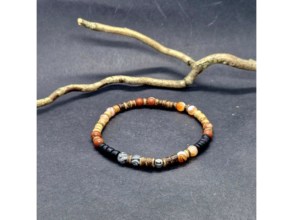 Objevte jedinečný pánský náramek, který v sobě spojuje zemitou sílu přírodních kamenů a teplo exotického dřeva.