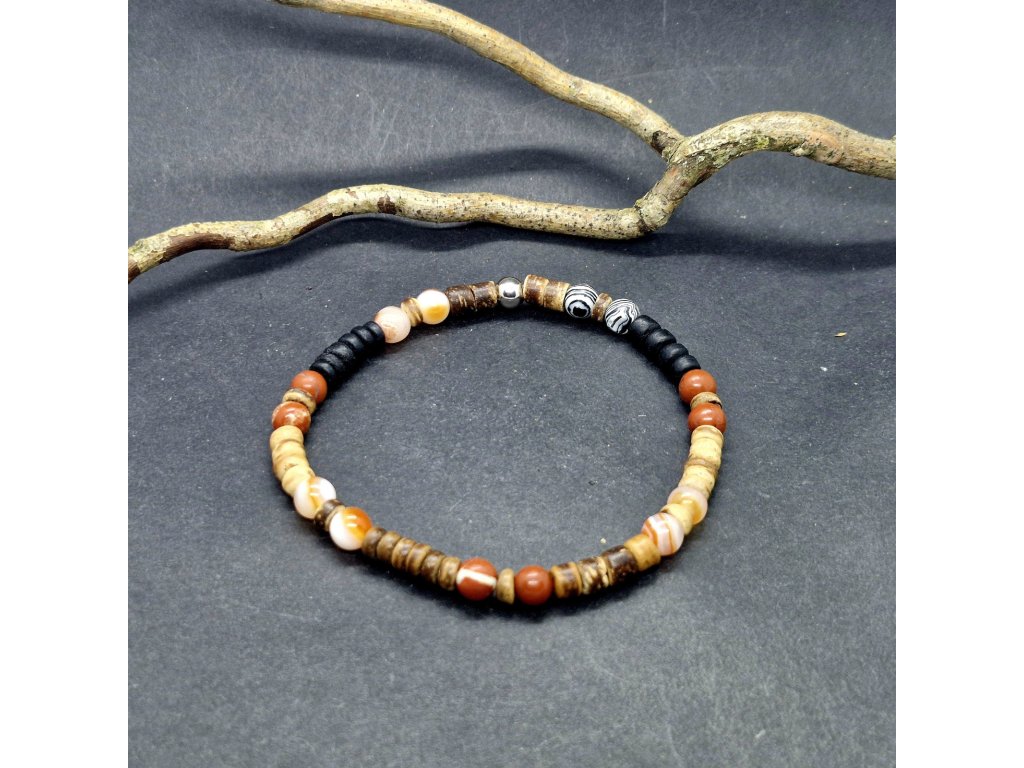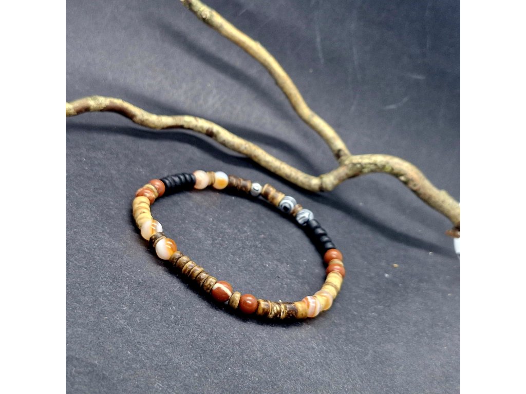 Náramek z kokosového dřeva a drahých kamenů. Spojením těchto čtyř prvků vznikl náramek, který podtrhne váš styl a zároveň vás obohatí o pozitivní energii a ochranu....