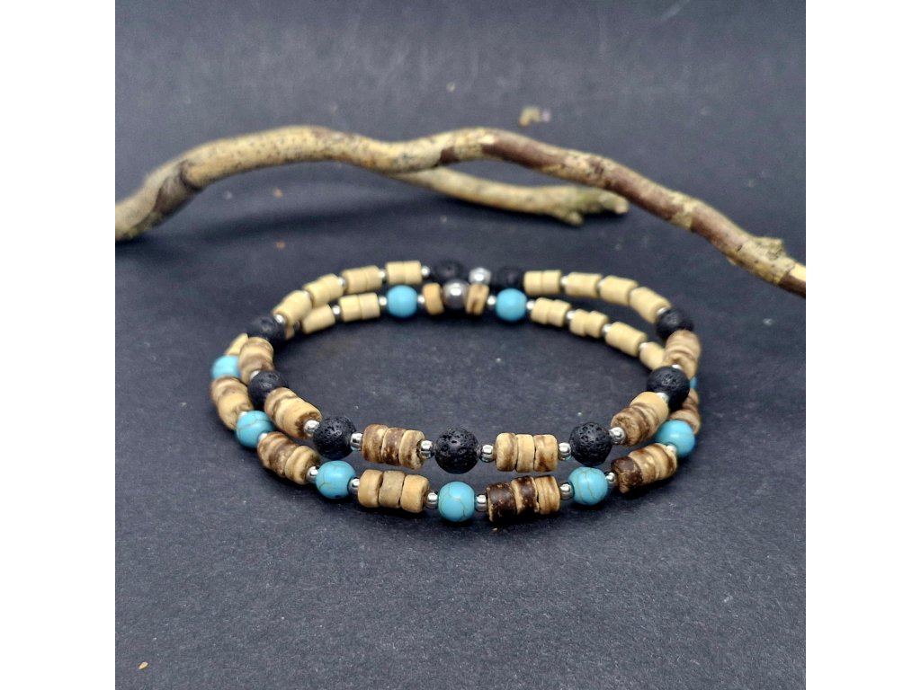 Kombinace, která neomrzí! Spojili jsme hřejivé kokosové dřevo s tyrkysovou energií tyrkenitu a chladnou nerezovou ocelí. Náhrdelník, který má...