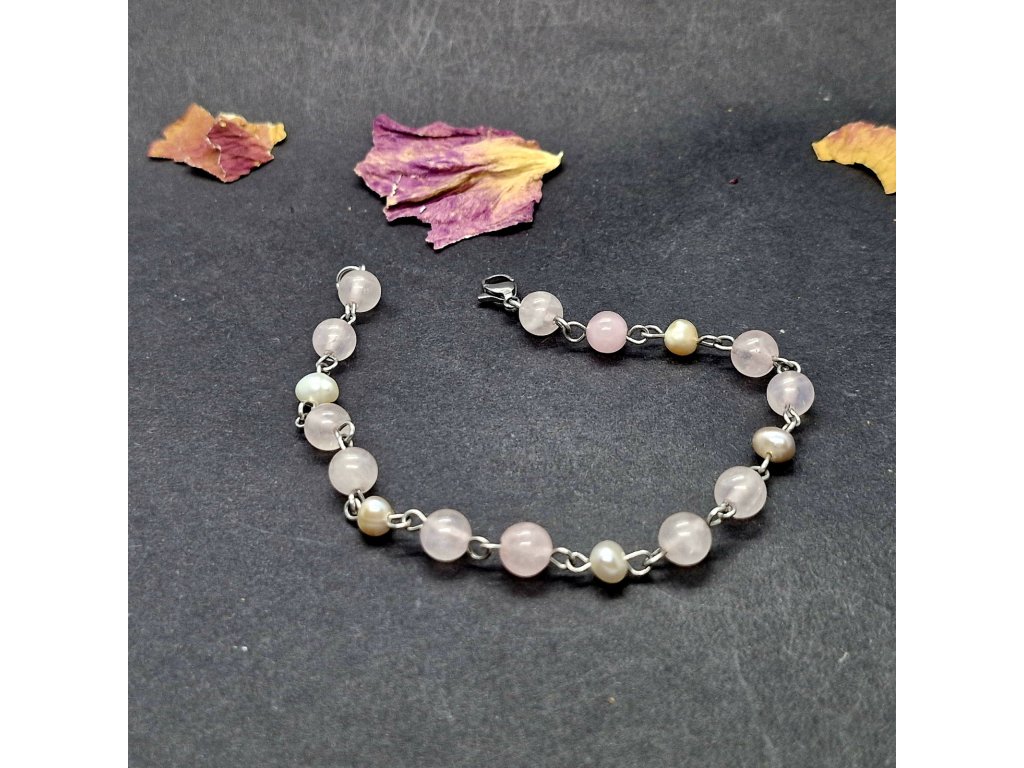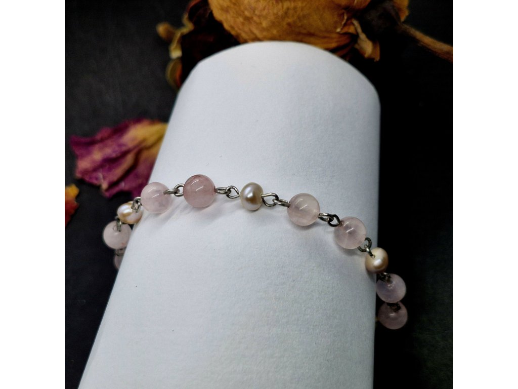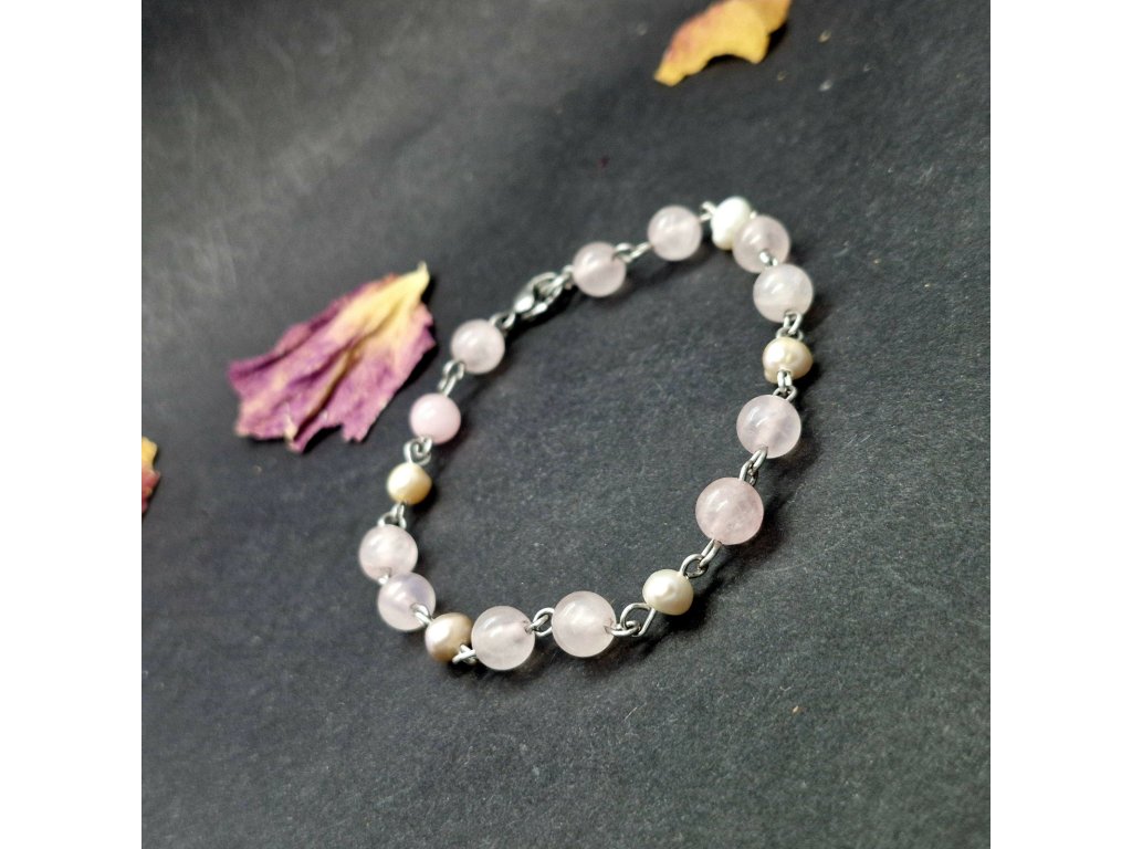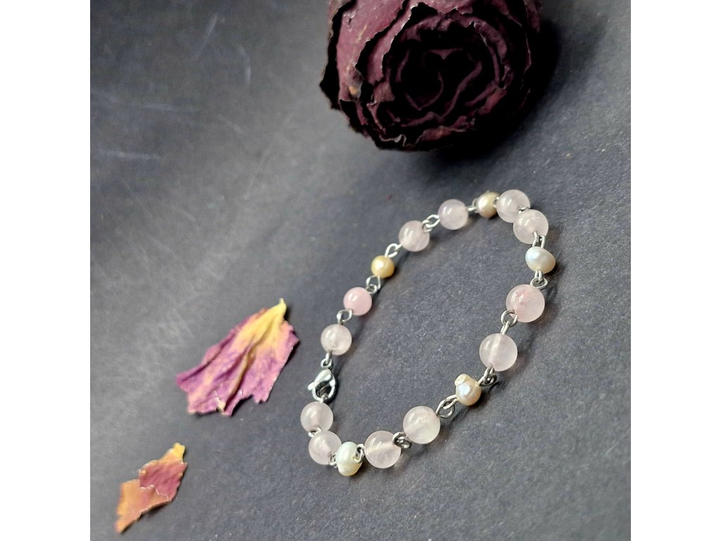 Nadčasový a jemný náramek pro každou příležitost. Náramek jsme vytvořili z krásných nepravidelných sladkovodních a kuliček růženínu.