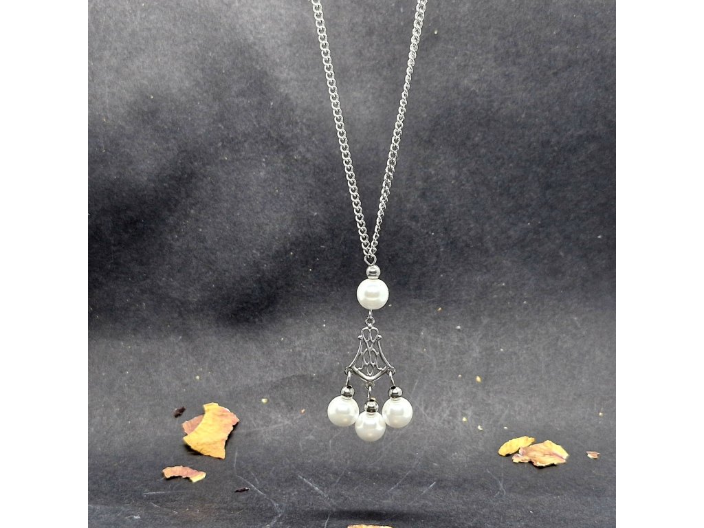 Rozměry: Délka 43, 5 cm. Perly 8 mm. Celková délka přívěsku 5 cm.