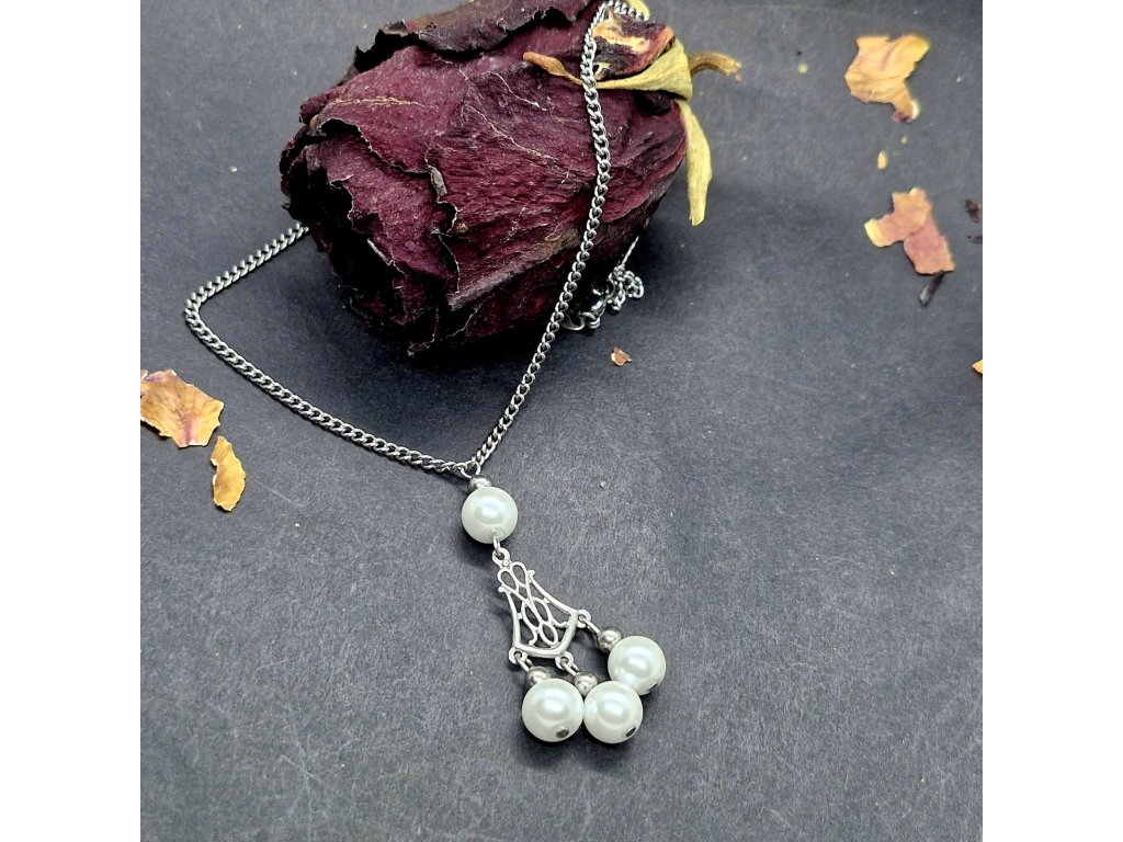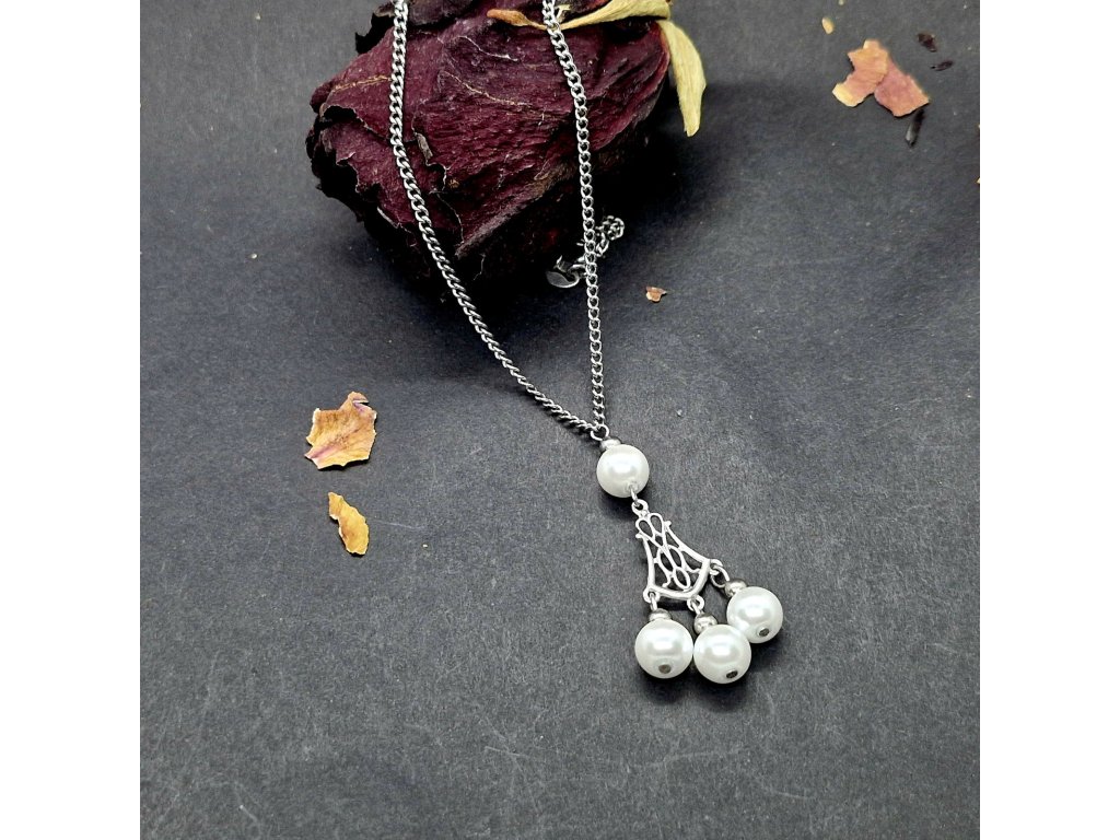 Perlová elegance...Jemný náhrdelník ideální pro všechny příležitosti. Jedinečný přívěsek zdobený říčními perličkami je pevně připevněn na řetízku z kvalitní nerezové oceli.