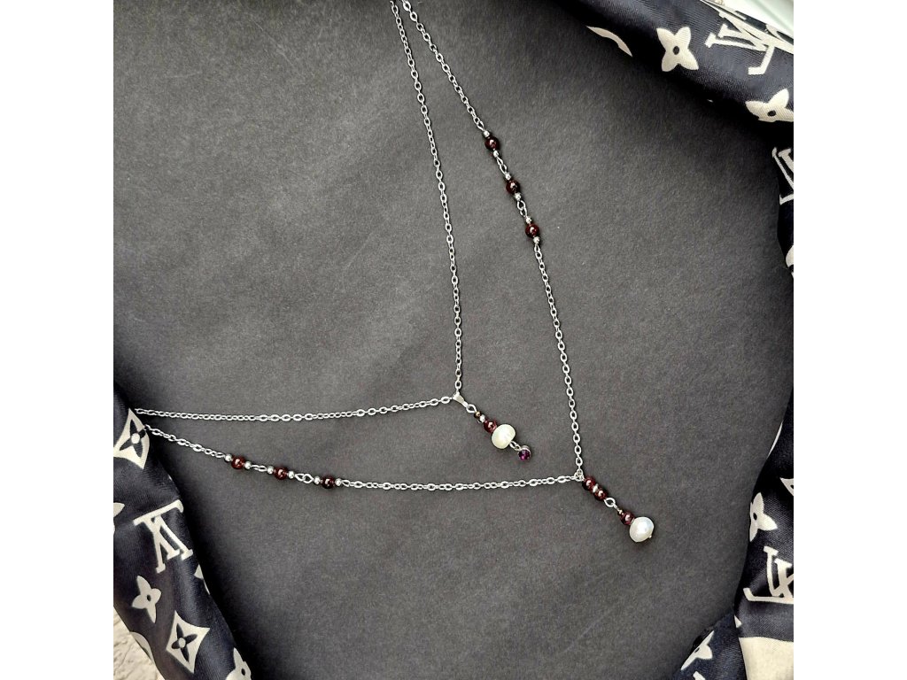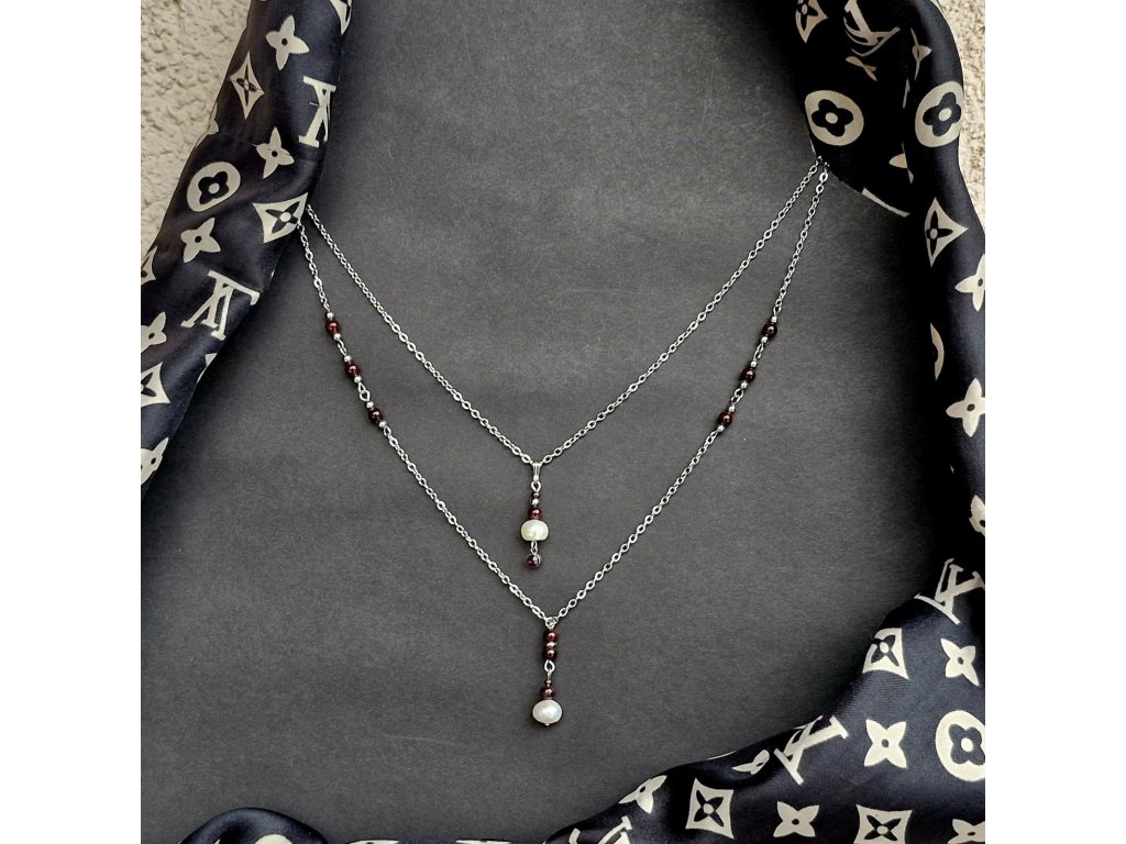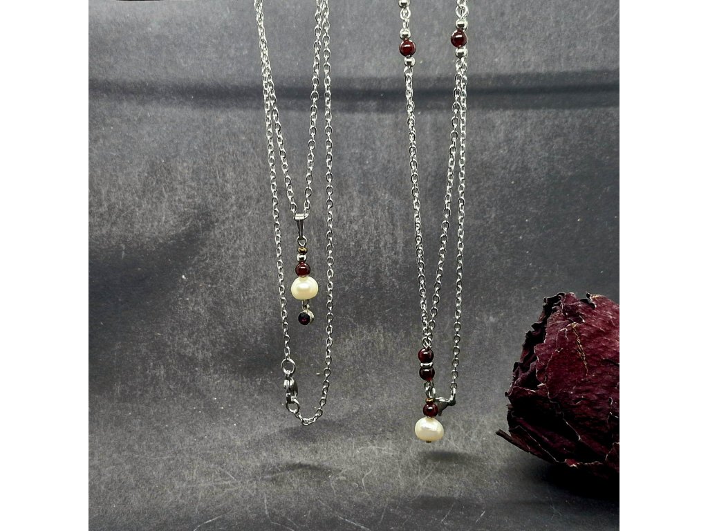 "Maria 3" Vrstvený set náhrdelníků (perly, granát)