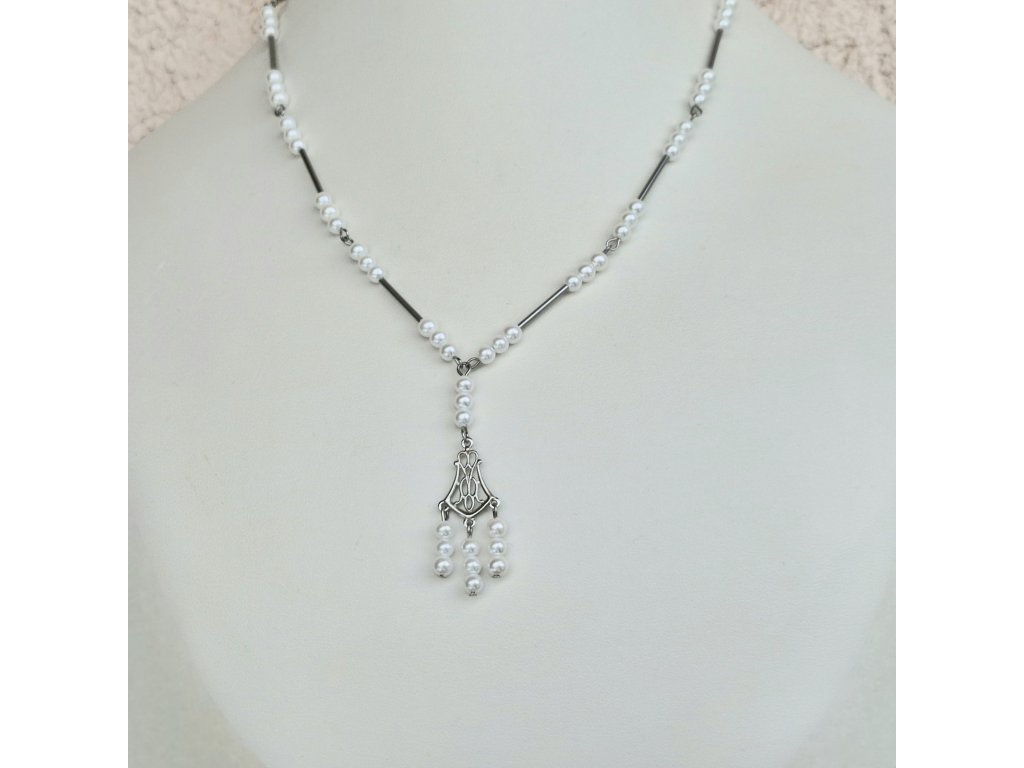 Elegantní a jemný náhrdelník, který dodá vašemu dekoltu okouzlující vzhled. Nádherná kombinace temnější modré a panensky bílé.