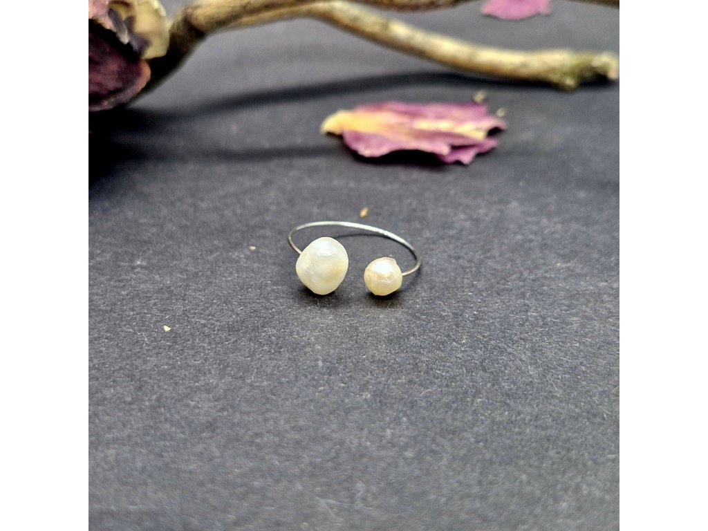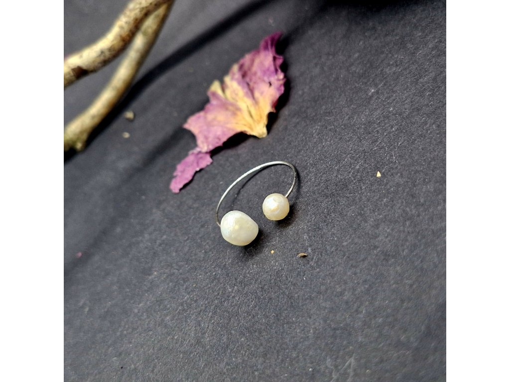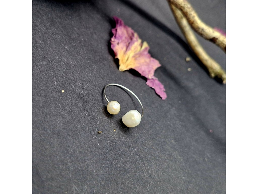 Jemnost...Autorský minimalistický prstýnek s nepravidelnými říčními perličkami.