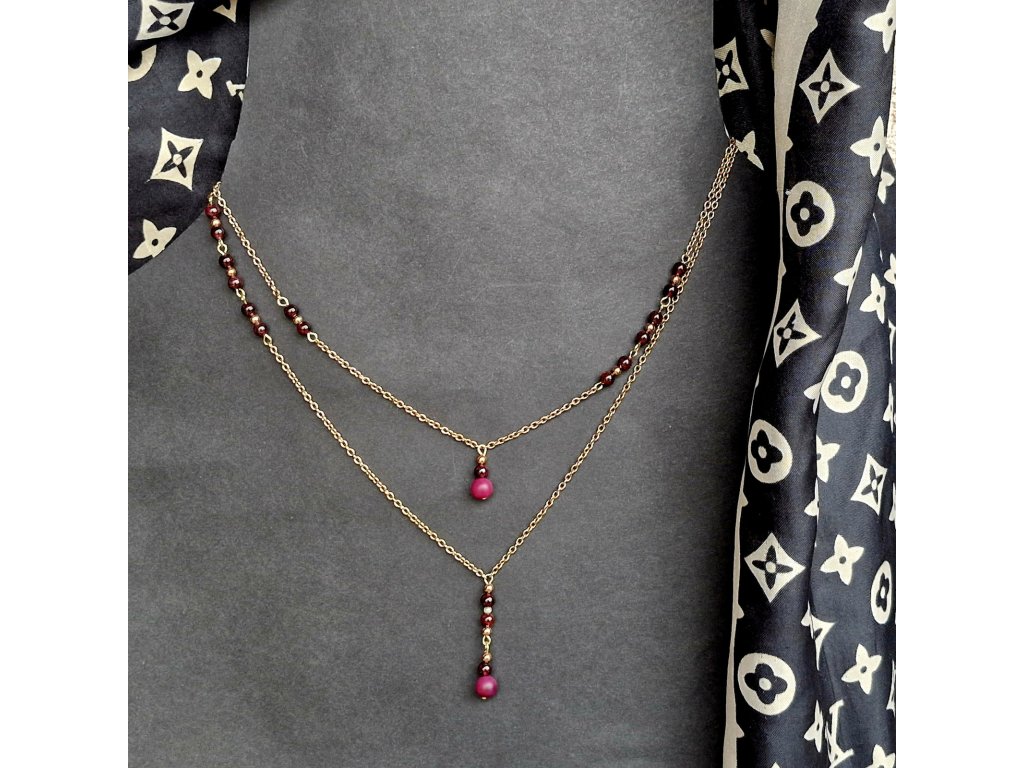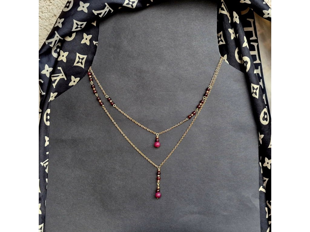 "Sabrina 2" Vrstvené náhrdelníky (pozlacená ocel, granát)