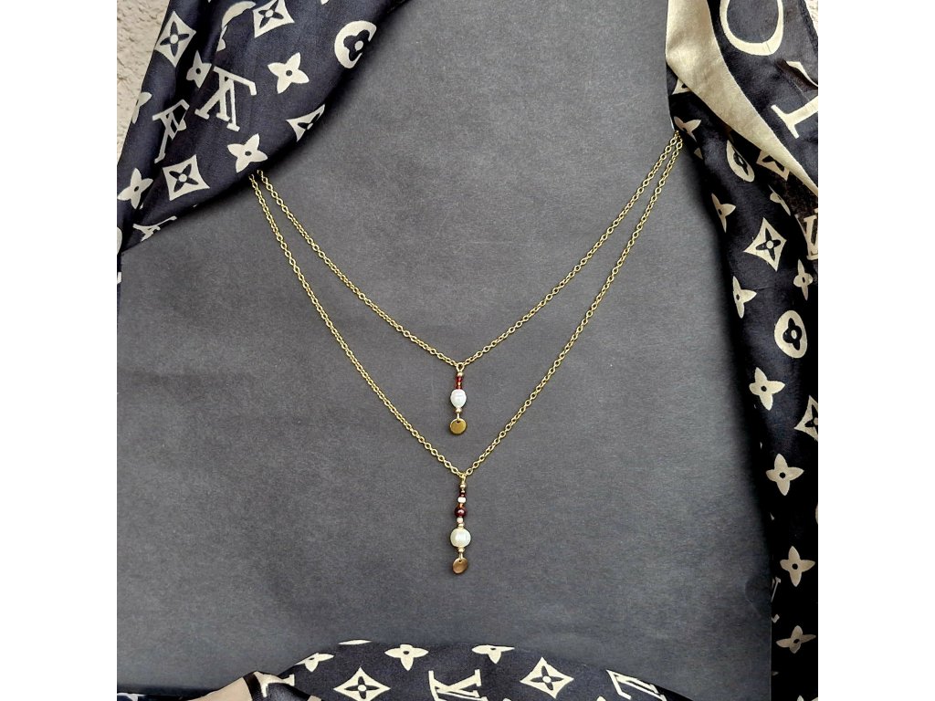 "Sabrina 3" Vrstvené náhrdelníky (pozlacená ocel, granát, perly)
