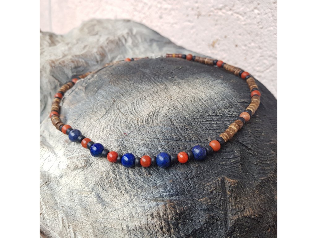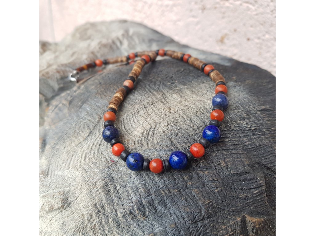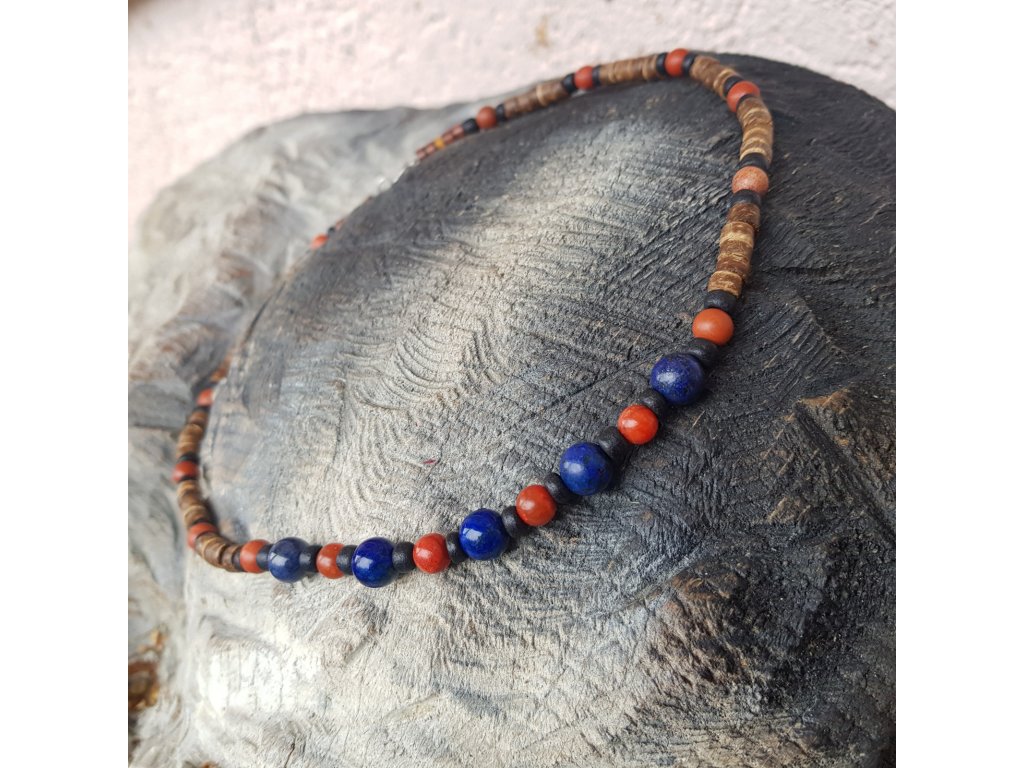 "Aron 2" Pánský náhrdelník (kokos, lapis lazuli, korál)