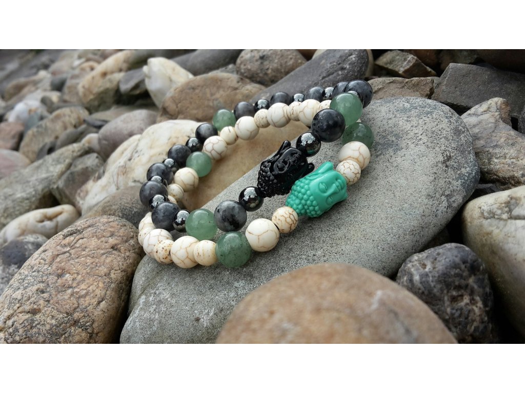 ? Materiál: | Avanturín, Budha, Hematit, Labradorit |
